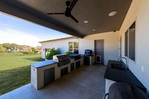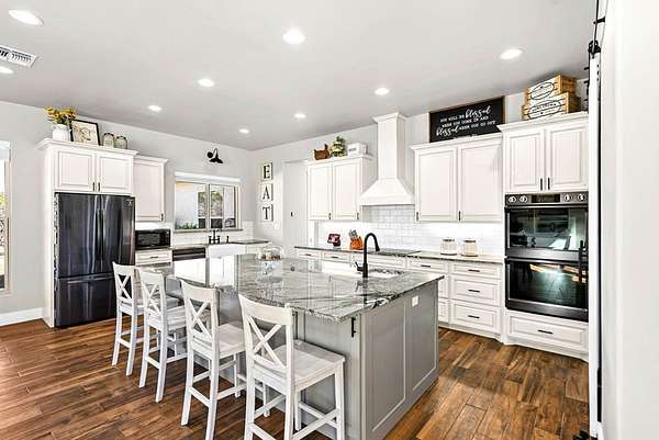 Located just outside the city limits of the highly desirable gated Saddlewood Estates community, this exceptional home offers the tranquility of country living while remaining just minutes from town, dining, shopping, medical facilities, & parks. Built by respected T5 Homes as the builder's personal residence, it showcases superior craftsmanship, smart design, long-term quality with elevated finishes & premium materials throughout. This 4-bedroom home features 2 bedrooms on the main level, with additional guest bedrooms upstairs, and all bedrooms offer private ensuite access, ideal for family & guests alike. The open-concept living area features a soaring vaulted ceiling, dramatic wall of windows, & stone fireplace, creating a warm & inviting space for everyday living & entertaining. The luxurious primary suite offers dual vanities, a spa-like walk-through shower, & electric fireplace. Outdoor living truly shines w/ a fenced backyard, sparkling pool, an expansive covered patio w/ outdoor kitchen. Additional highlights include a 3-car attached garage, 2-car detached garage, GYMNAMSIUM ideal for pickleball, basketball, and more. This rare opportunity will not last. Call today!