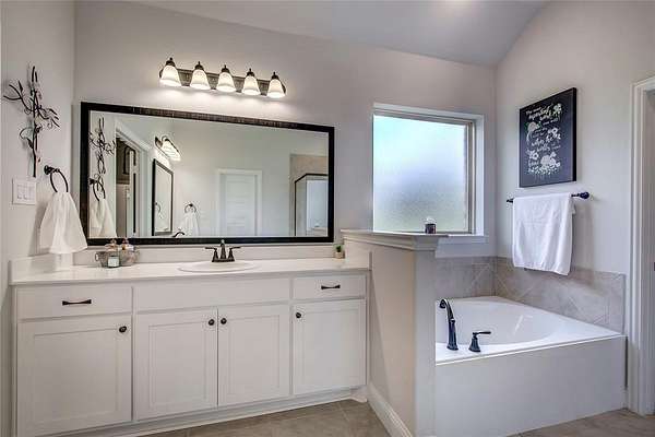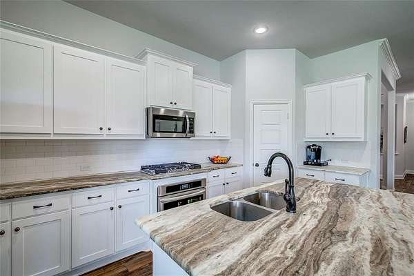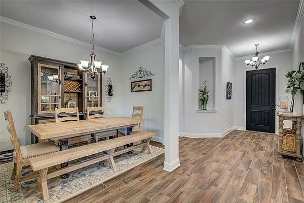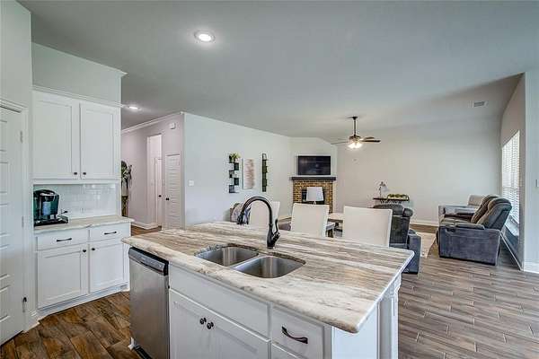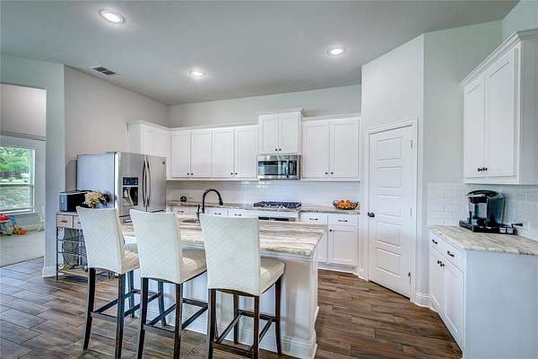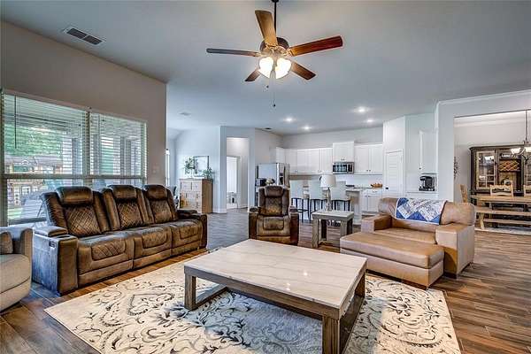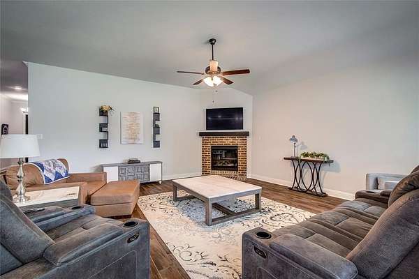 Experience the best of both worlds in this charming property located in Lone Oak, TX. With 4 bedrooms, 2.5 baths, and a 2-car garage, this home offers a blend of contemporary design and tranquil countryside living. Nestled on a sprawling 1.52-acre corner lot with road frontage on three sides, enjoy the space and privacy only a property like this can provide. Step inside to a light and bright interior boasting an open floor plan with wood grain tile throughout. The spacious layout is adorned with upgraded features and tall ceilings, creating an inviting atmosphere. The heart of the home is the stylish kitchen, complete with granite surfaces, a gas cooktop, a walk-in pantry, breakfast bar, and a cozy breakfast nook perfect for casual dining. For more formal occasions, the elegant dining room awaits. The living room, anchored by a warm gas log fireplace, is ideal for relaxation and entertaining. The split floor plan ensures privacy for the luxurious primary suite, which offers a serene escape with an ensuite bath featuring dual vanities, a large walk-in closet, and a soothing garden tub. Additional bedrooms are spacious and accommodating, while the dedicated office provides a perfect space for work or study. Practical details include a full-size laundry room to meet all your needs. Outside, the property shines with its brick and stone exterior and expansive surroundings. There's room to build a shop, and the above-ground pool offers a refreshing retreat along with breathtaking sunsets. Create your own peaceful retreat with practical benefits and room to grow--this home offers a unique opportunity for country living with modern conveniences.