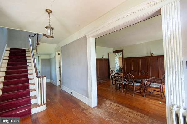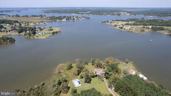 Step into the elegance of a 50-acre waterfront estate steeped in timeless charm. Built in 1920, this Neo-Classical Eastern Shore property offers the perfect combination of sophistication and natural beauty. The property is awaiting the perfect buyer who can transform it back to the style and charisma of it's earlier days. Enjoy a bright, welcoming interior. The main house features a large center hall foyer that leads to a stunning living room with a brick fireplace, custom-built shelving, and dual French doors opening into a sunroom. Bask in serene waterfront views from the sunroom, complete with hardwood flooring and another brick fireplace-a space designed for entertaining or quiet retreats. Create unforgettable dining experiences in a formal dining room highlighted by Black Walnut paneling, tasteful wall sconces, and a custom-built wine glass cabinet. The enclosed side porch, fitted with vintage touches like brick flooring, laundry amenities, and the original farmhouse enamel sink, doubles as a mudroom. Meanwhile, the waterside screened porch invites al fresco dining with picturesque views of Church Creek. The second floor offers practicality and comfort with four bedrooms and two bathrooms, accommodating family and guests with ease. A walk-in cedar lined closet and another walk-in attic closet offer a surprising amount of storage. Enhance your lifestyle with additional perks. A thoughtfully updated guest cottage (2019) offers two bedrooms, one bathroom, a kitchen, a living room, a dining area, and laundry facilities-currently enjoyed as a vacation rental. Wildlife thrives here: expect visits from ospreys, bald eagles, and white-tail deer in an atmosphere guests rave about. Relax poolside with a redesigned in-ground pool (2022) boasting a paver deck, modern landscaping, and fencing-all with views of Church Creek. A 28 x 42 wooden barn with concrete flooring, with space sufficient for garage/vehicle or boat storage, and an upper story is complemented by a four-stall stable and additional sheds. The barn built in 1960 was built using reclaimed wood from old chicken houses. Environmental stewardship defines this property. Placed in an Environmental Trust, the land remains protected, ensuring its use promotes nature and agriculture. Boating lovers will appreciate the creek's access to the Chesapeake Bay, renowned for crabbing, fishing, kayaking, and paddle boarding. Let your vision breathe life into this stunning space. This estate pairs historical allure with limitless possibilities for those ready to turn dreams into reality.