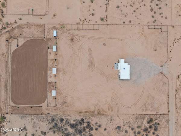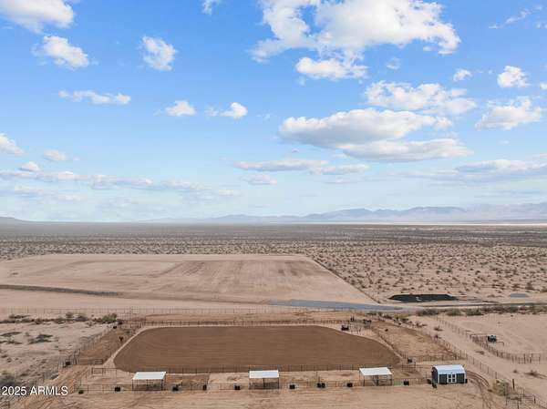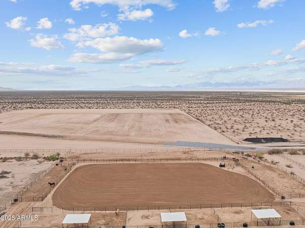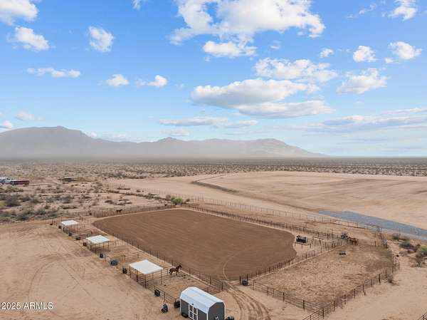 Welcome to this 5-acre horse property, offering breathtaking mountain views & a gated entry that sets the tone for privacy & comfort. Designed w/ equestrian lifestyle in mind, the property features 6 large pens w/ shade covers, 6 additional pens, 3 large turnouts, & a full-size roping arena with piped boxes . There's ample space to expand w/ more pens, a hot walker, a shop etc. The property also includes 5 RV hookups w/ water & septic, plus a storage container for belongings. Step inside the beautifully maintained home, features 2 bd 2 bathrooms, a stunning kitchen w/ a large island & built-in fireplace, a walk-in pantry, & a spacious laundry room. The master suite includes a walk-in closet & an oversized shower. Located near Silver Bit & just 30 mins to Wickenburg