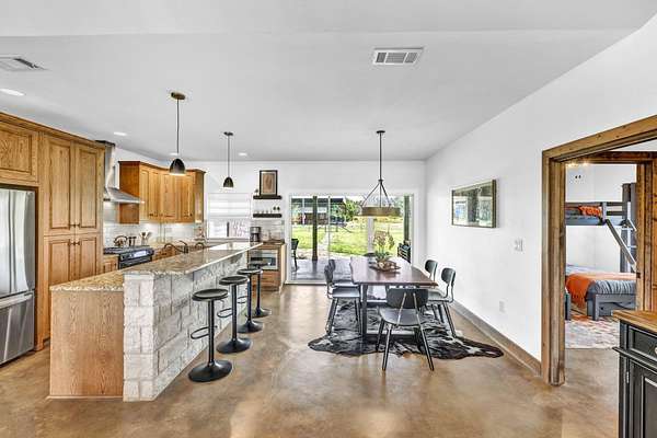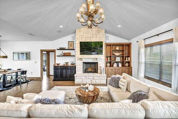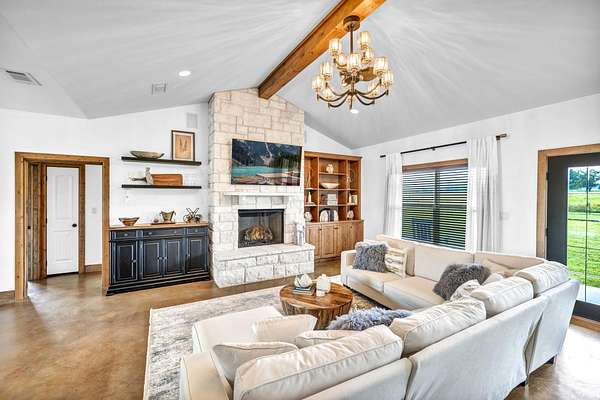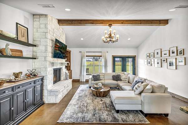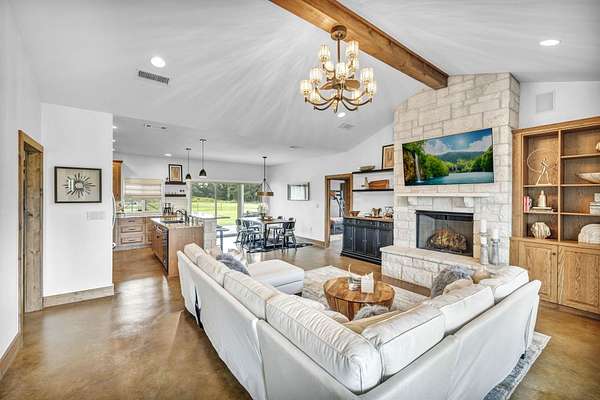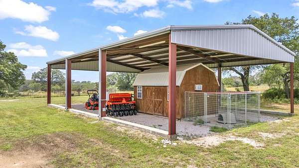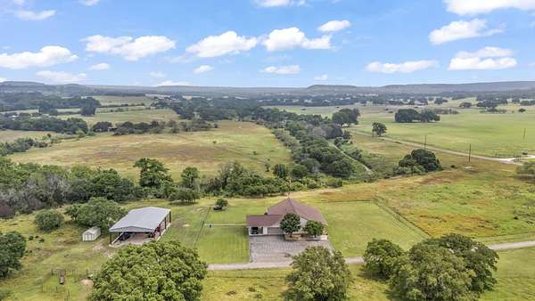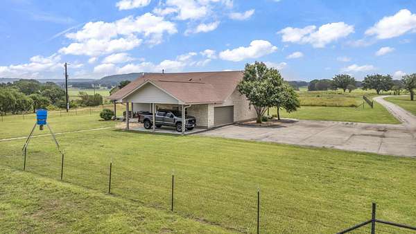 Charming Country Retreat on 4.37 Acres. Welcome to your perfect country getaway, nestled between Marble Falls and Burnet off Mormon Mill Road. This beautiful property spans 4.37 acres, offering peace, privacy, and stunning views of surrounding ranches and farms. Built in 2013, the home features 1,848 square feet of living space with 3 spacious bedrooms and 2.5 bathrooms. The newly remodeled interior is furnished with chic, luxurious decor, making it move-in ready or perfect for short-term rentals. The bedding and furnishings ensure a welcoming atmosphere for everyone. The primary master bedroom includes a cozy office space, perfect for working from home or managing household tasks. There's also an unfinished upstairs room, giving you the flexibility to create a space that suits your needs. Outside, you'll love the expansive back patio with two seating areas and ceiling fans. The property includes a full car garage, an extra carport, additional parking area, a canopy with an open barn feel, and two storage buildings for all your belongings. The property features an automatic gate and is fully perimeter fenced, with a separate fence around the house, making it ideal for pets or livestock. Enjoy the beautiful views and embrace the peaceful country lifestyle. This charming retreat blends modern comfort with country charm, ready to be your home or an inviting spot for guests. Don't miss out on this piece of paradise! Dale Brown, listing agent, is related to the seller