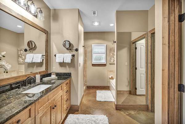 - Breakfast Bar, Granite Counters, High Ceilings, No Steps to Entry, Recessed Lighting, Split Bedroom, Vaulted Ceiling(s), Walk-In Closet(s)