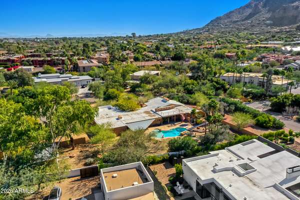Situated on a full 1-acre cul-de-sac lot near Resort Row, with striking Camelback Mountain and Echo views, this flat, non-hillside, sewer-connected parcel offers exceptional flexibility in one of Paradise Valley's most desirable central locations . The existing residence is structurally solid and fully livable, having operated successfully as a rental for the past five years. It provides immediate usability and income potential. This creates a rare opportunity for a buyer to occupy, renovate thoughtfully over time, or land bank while collecting rental income in a premier redevelopment corridor. Surrounded by active and recently completed $10M+ estate construction, the location strongly supports a custom luxury build, high-end remodel, or strategic Hold.