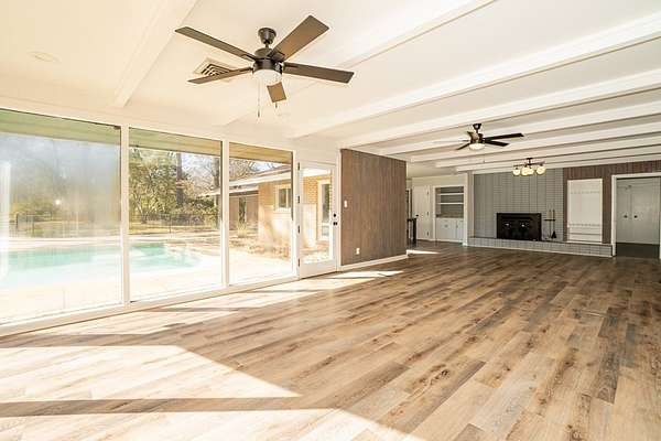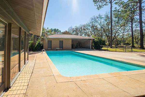 This unique property has something for everyone in the family to love! Featuring 4 spacious bedrooms, 3 full baths, plus a half bath conveniently located in the pool house/workshop area. The remodeled kitchen is beautiful--complete with beautiful lower cabinets, subway tile backsplash, floating shelving, granite countertops, a large island, stainless steel appliances, and a striking copper farmhouse sink. It opens to an enormous den showcasing exposed beams, a cozy fireplace, and floor-to-ceiling windows offering incredible views of the pool and over 4 acres of land! The formal living room is elegant and connects seamlessly to the dining room, which is large enough to host all of your family gatherings--there's even room for a comfortable sitting area. The primary suite easily accommodates a king-sized bed with plenty of extra space for additional furniture. The three additional bedrooms are all oversized and filled with natural light--every room in this home feels spacious and inviting! Step outside and enjoy your own private retreat--the perfect backyard oasis! Entertain by the HUGE pool, relax under the trees, or let your imagination run wild. The property is enhanced by multiple fruit trees. With so many features and so much space, this property truly offers it all--a peaceful, private setting with room to grow, create, and enjoy life to the fullest!