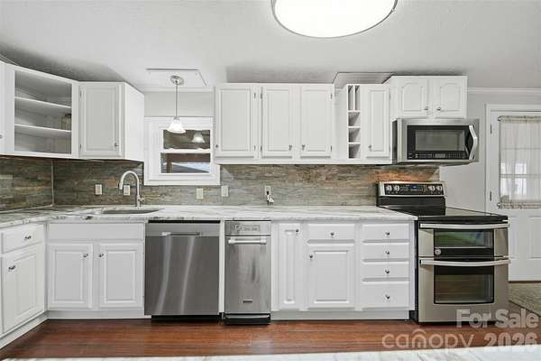 Calling all hobbyists, homesteaders, woodworkers, car enthusiasts, gardeners, and anyone dreaming of peaceful acreage with room to breathe-this property offers endless possibilities. Set on 3.64 quiet, usable acres beside a tranquil tree farm, this 4-bedroom on-frame modular home invites you to live, work, and unwind in a setting that feels worlds away yet remains conveniently located. New central air/heat pump and Hot water heater all replaced 2025. Step inside to a spacious open floor plan designed for connection, with wood plank and tile flooring throughout and a comfortable split-bedroom layout that places the primary suite on one side of the home and the additional bedrooms on the other. The living, dining, and kitchen areas flow together easily, creating a warm central hub for gatherings, daily routines, or cozy evenings in. Natural light filters through the home, adding to the sense of calm and simplicity. One of the most beloved features is the large covered back porch, stretching almost the full length of the home. Picture slow mornings with coffee, afternoons listening to the breeze move through the trees, or evenings unwinding as the sun sets across your acreage. It's a space that truly expands the heart of the home outdoors. For anyone who creates, builds, tinkers, or dreams big, the outbuildings deliver exceptional value-each equipped with electricity to support a wide range of uses: An 1100-sq-ft detached 3-car garage, perfect for vehicles, tools, equipment, a workshop, or storage. A dedicated woodworking shed, ideal for crafting, projects, or hobby space. A metal barn with a history as a three-stall setup with a tack room, now used for storage but easily adaptable for animals, gardening supplies, or outdoor equipment. A two-car metal carport offering additional covered parking or gear protection. The land itself is a blank canvas-quiet, mostly open, and ready for gardens, small livestock, recreation, or simply enjoying the rhythm of country living. Whether you envision raised beds overflowing with vegetables, a small flock wandering the pasture, or a workshop where your creativity takes shape, the property welcomes it all. If you're seeking a peaceful retreat with versatile spaces and room to grow your lifestyle in any direction, this property offers a rare combination of comfort, functionality, and natural beauty.