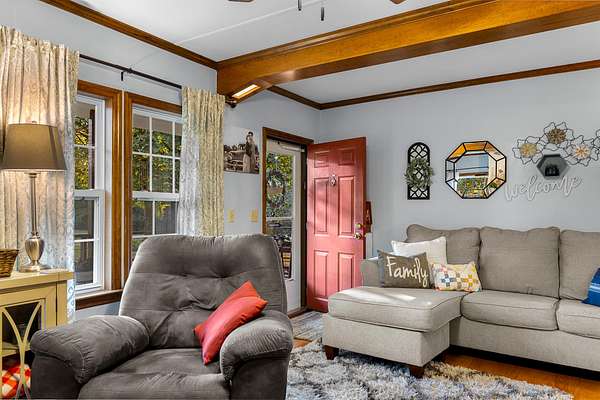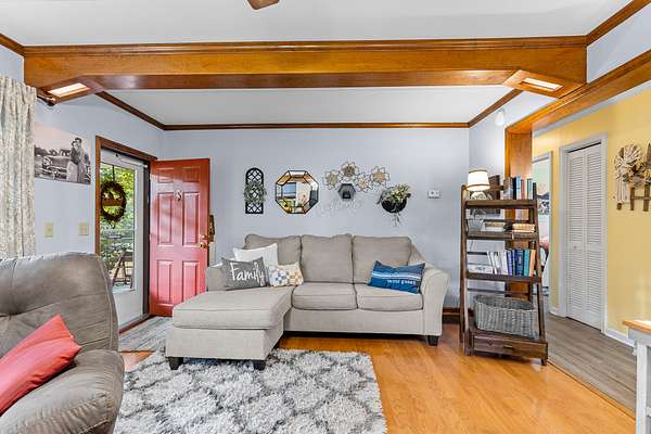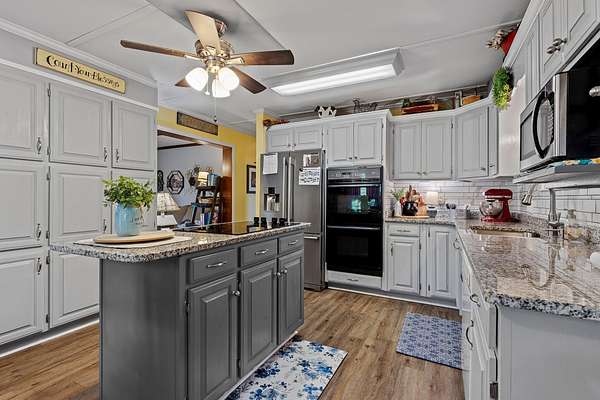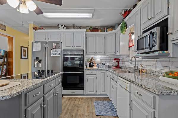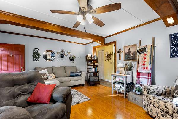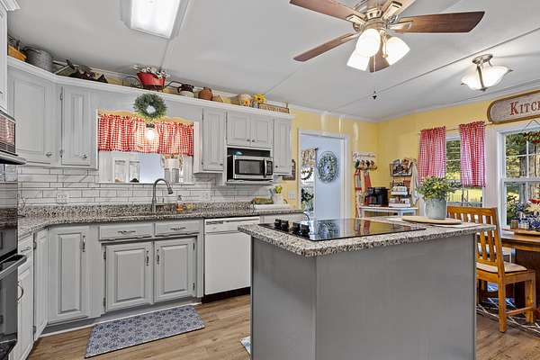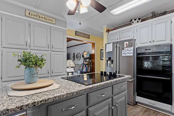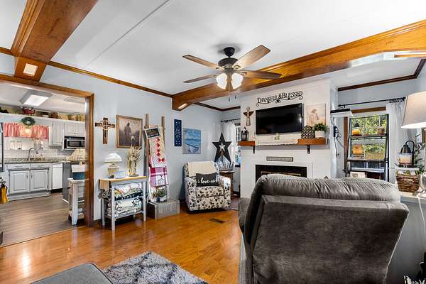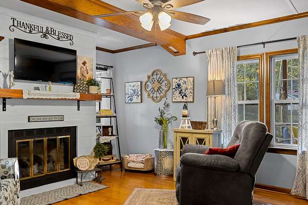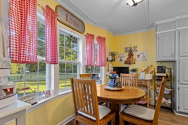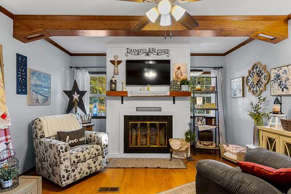 Welcome to 4915 Spring Place Road, a charming 3-bedroom, 2-bathroom home nestled on approximately 2 acres of flat, usable land ideal for both livestock and wildlife. Step inside the living room where a cozy fireplace takes center stage beneath rustic wood-beamed ceilings, creating the perfect gathering place. The kitchen is a true standout with updated cabinetry, a built-in island cooktop, wall oven, convection oven, and stainless steel refrigerator and microwave. A sunny breakfast nook framed by bay windows makes every meal feel special.