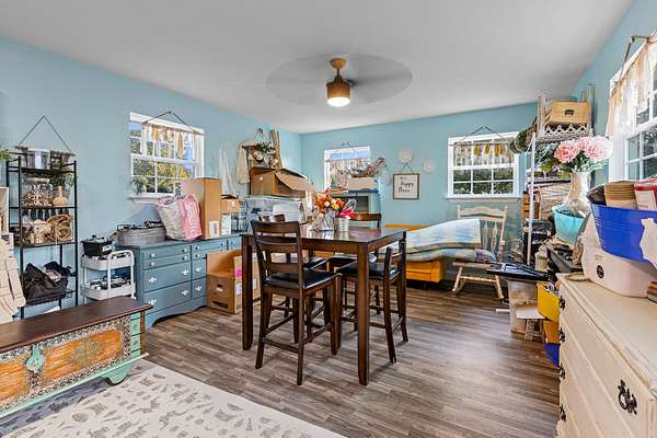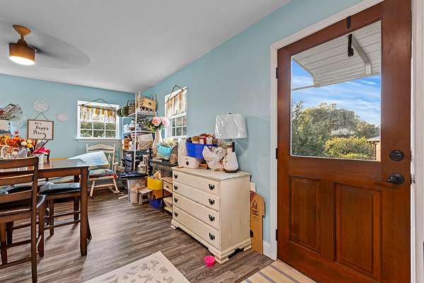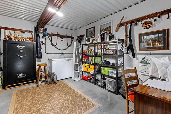 Outdoors, you'll find a fenced garden area leading to a unique bonus structure featuring a playroom, extra living space, and a basement bunker room--perfect for hobbies, recreation, or storage. The property also boasts a large three-car carport, a barn within the fenced pasture, and two additional storage buildings for all your needs.