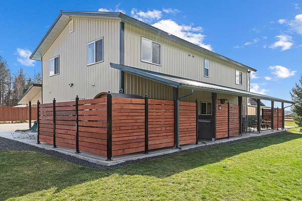 Custom-built barndominium in Deer Park designed for multigenerational living and wide-open space. Fully set up for horses, fencing, and hobby farming. Massive shop with bathroom and laundry, lean to for covered RV storage, multiple outbuildings, 2 car detached garage. Usable manacured land ready for your vision. Inside, enjoy an open-concept kitchen, dining, and living area with great flow for everyday living and gatherings. Radiant floor heating, energy efficient furnace. Primary suite on the main floor, 4+ bedrooms and 3+ bathrooms, offering flexibility for extended living for guests, or work-from-home needs. Separate Guest quarters with laundry, kitchen etc. Well maintained yard and gravel driveway. Plenty of parking for boats, RV's trailers etc. Step outside to covered decks, sauna, and hot tub-perfect for relaxing and taking in the peaceful setting. Ideal for a potential wedding venue, event space, or home-based business with room to grow.