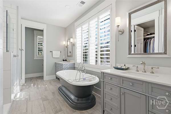 - Bathtub, Breakfast Area, Breakfast Bar, Built-In Features, Ceiling Fan(s), Double Vanity, Gourmet Kitchen, High Ceilings, Kitchen Island, Main Level Primary, Pantry, Primary Suite, Programmable Thermostat, Recessed Lighting, Separate Shower, Split Bedrooms, Tray Ceiling(s)