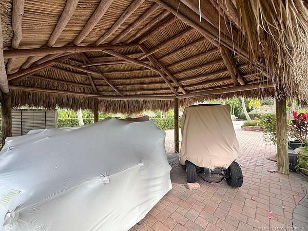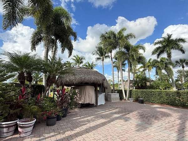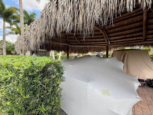 One of the largest lots in Motorcoach Resort St. Lucie West! This spacious 3,495 sq. ft. RV lot is fully covered in pavers and features a large tiki with a custom kitchen complete with built-in grill, perfect for entertaining or relaxing in style while enjoying the sights and sounds of the two lighted fountains at the rear of the property and the expansive golf course views. The wide frontage offers parking for two vehicles plus a golf cart, and the no-neighbor side provides extra privacy with a beautiful, park-like setting and lush landscaping. Ideally located near the South Pool & Spa and just a short walk to the main clubhouse, this property offers the best of both convenience and tranquility. Priced to sell-the value is in the land! Bring your coach and start enjoying resort living today.
