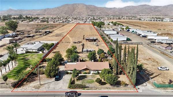 Est $5,211/moWhat a find! Almost 5 acres of flat land, located in the heart of San Jacinto/Hemet! The property features a single story home that has almost 1600 sf. of living space, 3 bedrooms, 2 bathrooms, living room, dining room, and bonus/laundry room. The opportunities are practically endless with this amazing parcel...let your imagination soar!