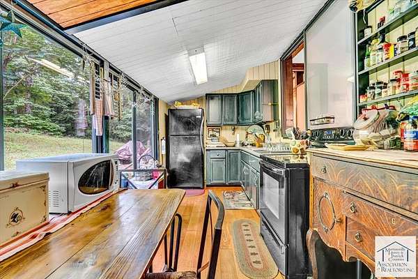Welcome to your serene mountain retreat--a contemporary ranch nestled on over 6 acres of natural beauty, surrounded by woods and a gentle stream. Step onto the expansive front deck and let the cool mountain breeze and the sounds of birds and tree frogs melt your stress away. Inside, this light-filled home features soaring windows that invite the outdoors in, with two spacious bedrooms bathed in natural sunlight. Open your windows to let in the fresh mountain air and savor the taste of pure spring-fed water. Whether you're sipping coffee on the porch or wandering through your private wooded haven, this peaceful escape invites you to slow down and enjoy the simple life. Call today to schedule your private showing.