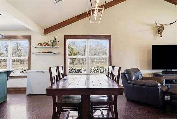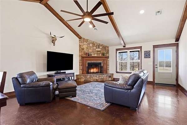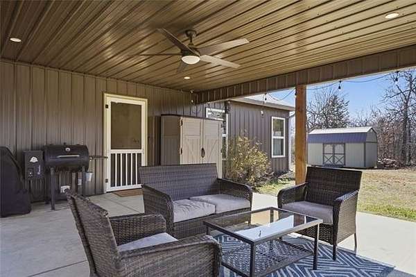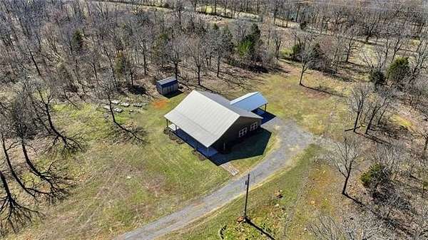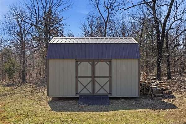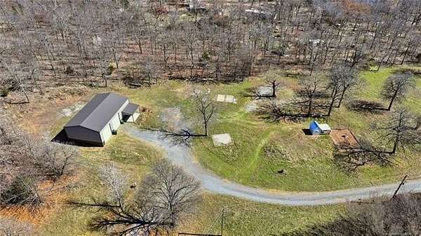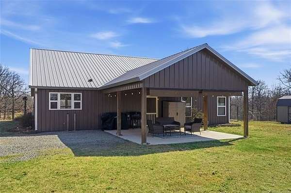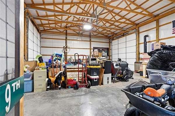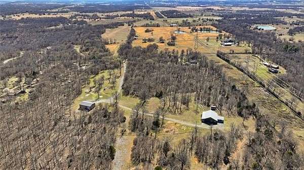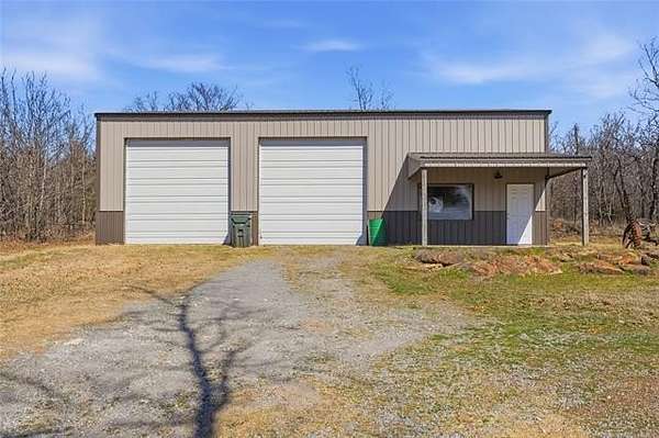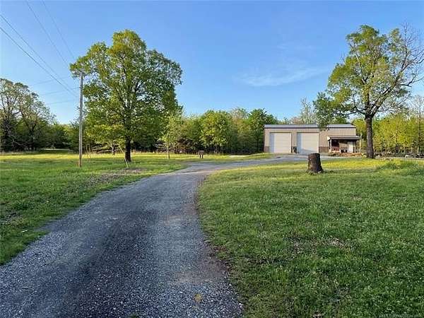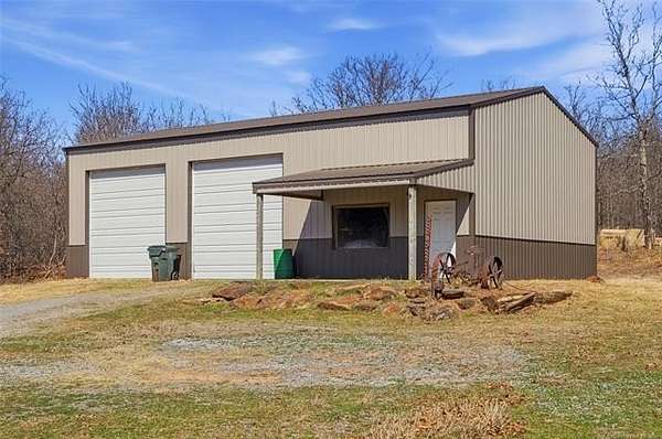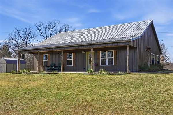 Homesteader's Dream! Welcome to this modern farmhouse retreat on 11 acres in Muskogee, Oklahoma! Built in 2021 on top of the hillside, this serene property has all the best of country living. A 30*50 shop, featuring three overhead doors, office space, bathroom, electric, ample storage, and a utility sink-ideal for a home business, hobbies, or equipment storage. The 3-bedroom, 2-bath home blends timeless craftsmanship with thoughtful modern design. Inside, you'll find stained concrete floors and beautiful custom woodworking throughout, offering both warmth and durability. The farmhouse kitchen is as functional as it is beautiful, showcasing granite countertops, a pot filler, pantry, and a striking double-basin antique farmhouse sink. A large utility room adds extra cabinet space, a convenient drop zone, and a unique antique drain board sink full of character. The primary suite provides a peaceful retreat with a clawfoot soaking tub, spacious walk-in tile shower, double vanities with copper sinks, and generous storage. Outdoor living shines with covered front and back porches, raised garden beds, fruit trees, and an abundance of established perennials. Additional features include a chicken coop, RV pad, and new storage shed, making this property perfectly suited for sustainable living, privacy, and modern comfort. Shown by appointment only.