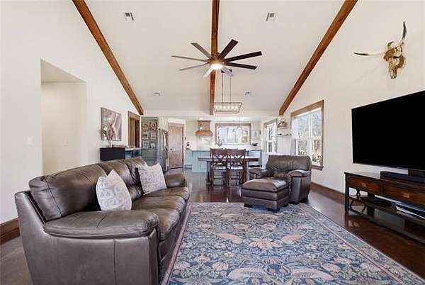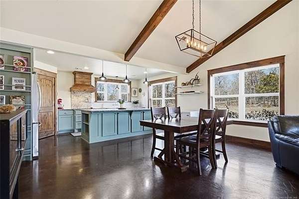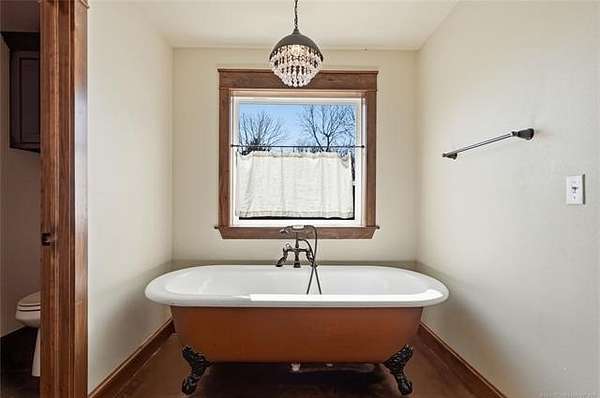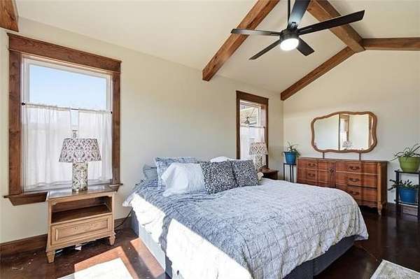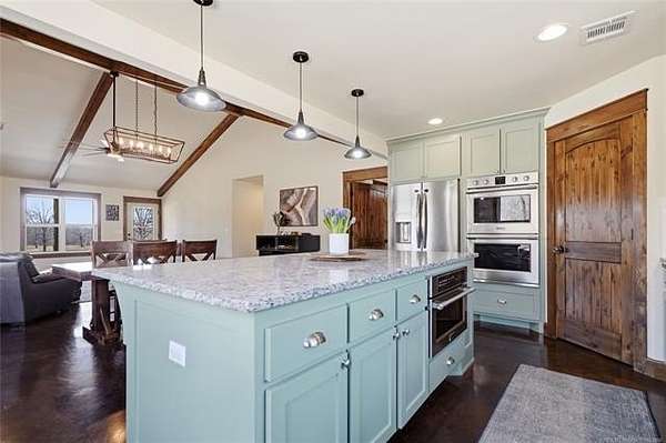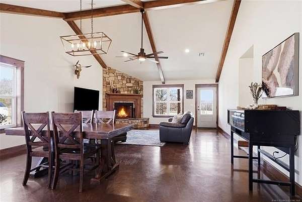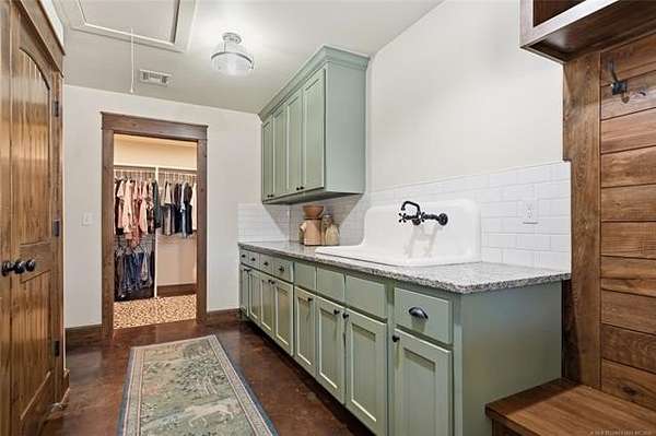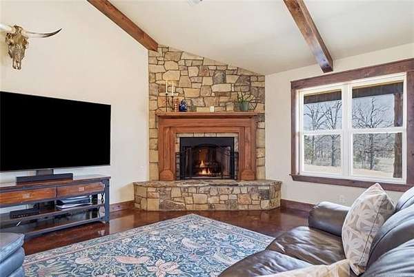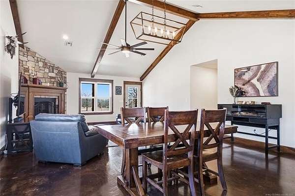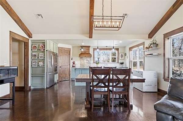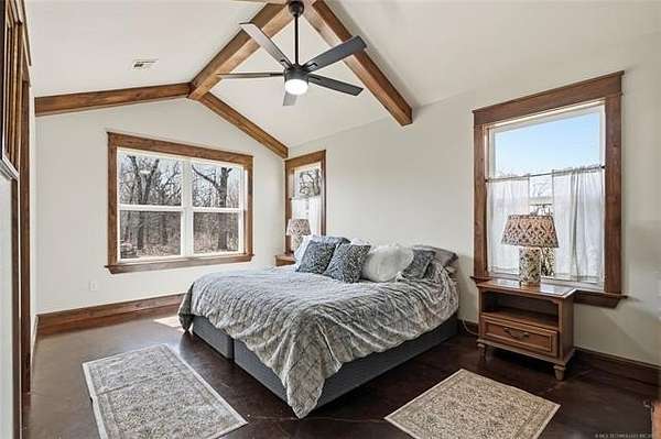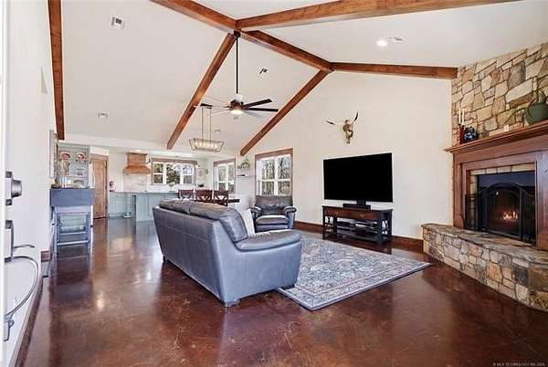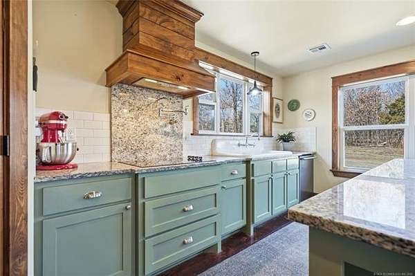Homesteader's Dream! Welcome to this modern farmhouse retreat on 11 acres in Muskogee, Oklahoma! Built in 2021 on top of the hillside, this serene property has all the best of country living. A 30*50 shop, featuring three overhead doors, office space, bathroom, electric, ample storage, and a utility sink-ideal for a home business, hobbies, or equipment storage. The 3-bedroom, 2-bath home blends timeless craftsmanship with thoughtful modern design. Inside, you'll find stained concrete floors and beautiful custom woodworking throughout, offering both warmth and durability. The farmhouse kitchen is as functional as it is beautiful, showcasing granite countertops, a pot filler, pantry, and a striking double-basin antique farmhouse sink. A large utility room adds extra cabinet space, a convenient drop zone, and a unique antique drain board sink full of character. The primary suite provides a peaceful retreat with a clawfoot soaking tub, spacious walk-in tile shower, double vanities with copper sinks, and generous storage. Outdoor living shines with covered front and back porches, raised garden beds, fruit trees, and an abundance of established perennials. Additional features include a chicken coop, RV pad, and new storage shed, making this property perfectly suited for sustainable living, privacy, and modern comfort. Shown by appointment only.
