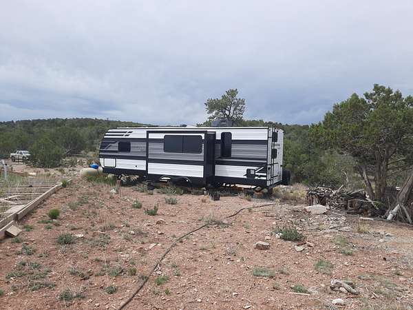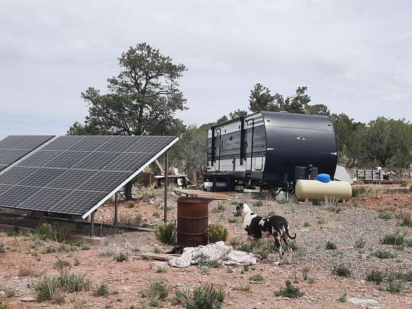 SPECTACULAR VIEWS !! Imagen sitting on the porch of the proposed cabin looking at this view! The stem walls are in the septic and solar are in and a garage to store your toys! The cabin site, sits on the lower 37.4 acres with the top 40.77 being undeveloped giving you 78.25 acres of privacy all backing up to 640 acres of state trust land. With this much land you never know what will be in your yard... elk, deer, wild burros, cows?? The 2bd 2ba cabin plans have been approved. Some building has been started but had to be put on hold, the most expensive parts of the build have already been completed. The travel trailer could be included, The roads are maintained by the POA as well as a community well to haul water from. Possible owner carry, 35.25771,-113.03233