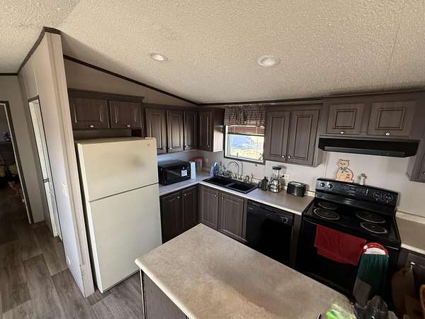 - Ceiling Fan(s), Formica Counters, Kitchen Island, Pantry, Wood Counters