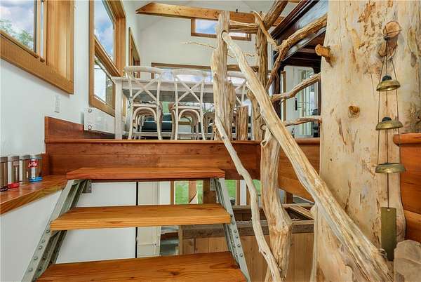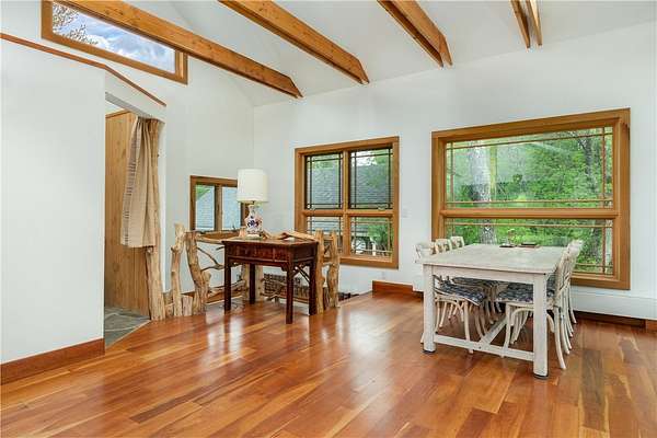 - Bedroom On Main Level, Breakfast Bar, Cathedral Ceilings, Eat In Kitchen, Entrance Foyer, Great Room, Home Office, Kitchen Family Room Combo, Kitchen Island, Living Dining Room, Main Level Primary, Separate Formal Living Room, Skylights, Solid Surface Counters