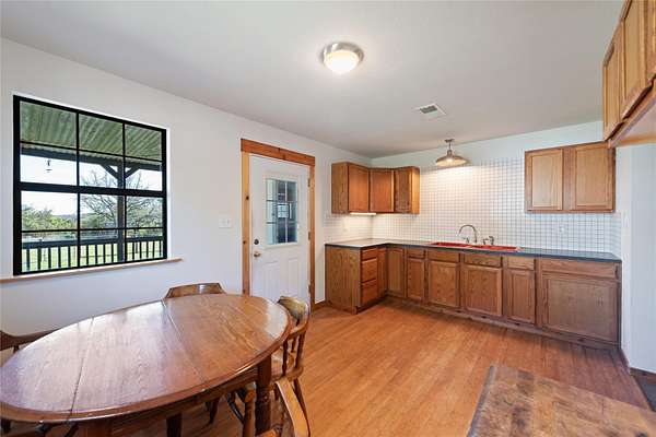 Set on 20 private acres in the heart of Burnet County, this Hill Country property offers a rare blend of space, versatility, and peaceful surroundings. The estate features a primary residence with 3 bedrooms and 2 bathrooms, along with a separate 3-bedroom, 2-bath guest house-ideal for multi-generational living, guests, or income-producing opportunities. The main home showcases vaulted ceilings, natural woodwork, and an open, inviting layout filled with natural light. The kitchen flows easily into the living and dining areas, creating a comfortable space for everyday living or entertaining. Covered porches at the front and rear invite you to take in sweeping Hill Country views, mature trees, and the quiet beauty of the surrounding land. The secondary residence is thoughtfully positioned for privacy and offers its own full living accommodations, making it well-suited for extended stays or flexible use. The land itself is a standout feature-20 acres of usable space with a mix of open areas and native trees, barbed wire fencing, and expansive rural views. With agricultural exemption in place, well water, septic, and no HOA, the property provides both freedom and long-term value. Whether you're looking for a private retreat, family compound, or a property with income potential, this unique offering delivers space, functionality, and the best of Texas Hill Country living.
