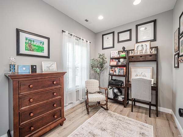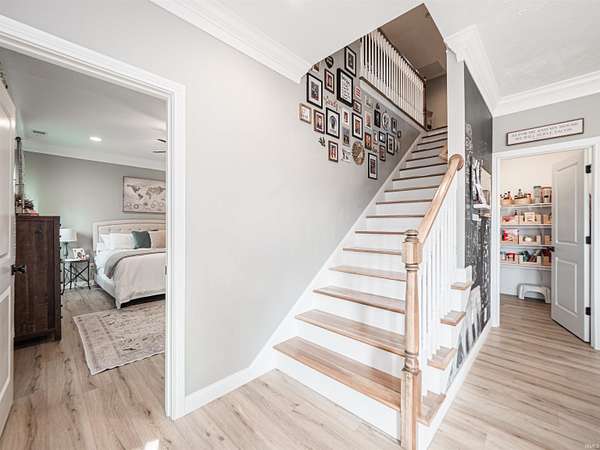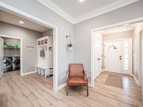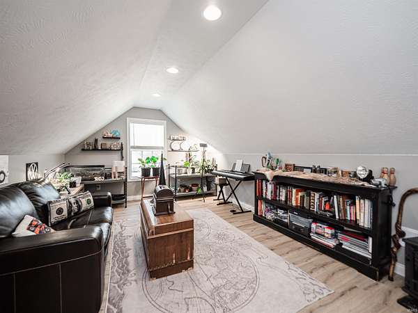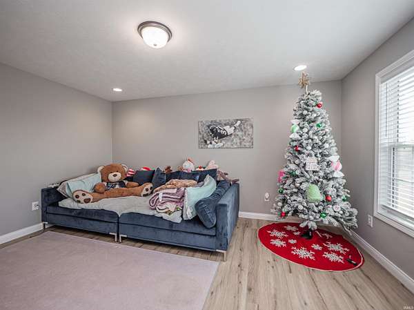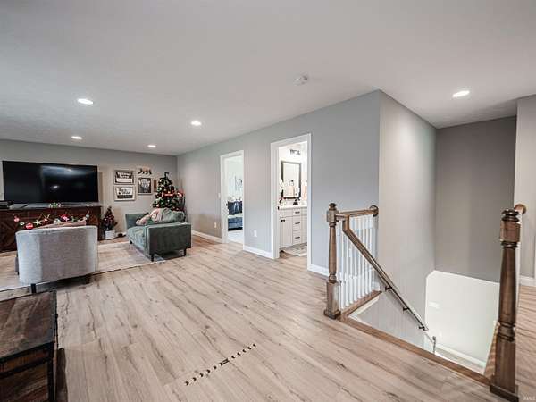 Open house Sunday 1/11 from 12-1PM! Welcome to this unique custom 4-bedroom, 2.5-bath home, situated on a quiet cul-de-sac lot offering nearly 5 acres in Lincoln Pointe Estates in Newburgh, IN. Upon entering the foyer, you will find a spacious coat closet and office/bonus room. Just around the corner, you'll find the laundry room, mudroom, and a half bath. The cozy living room features a fireplace and flows seamlessly into the kitchen and dining area, ideal for entertaining. The kitchen is equipped with a kitchen island offering additional seating, a walk-in pantry, a farmhouse sink, a mounted pot filler faucet above the stove, and stainless steel appliances included in the sale of the home. The main level includes a master bedroom with a private ensuite showcasing a tiled shower, dual sinks, and a spacious walk-in closet. Upstairs, you'll find a living area, three additional bedrooms, a full bathroom with dual sinks, and ample storage. The fourth bedroom can also serve as a versatile bonus room. The property offers ample parking with an extra long driveway and a 2.5 car garage. The backyard features a pond, ideal for fishing, taking a ride on the paddle boat (included in the sale), or simply enjoying peaceful outdoor activities!