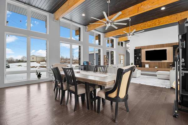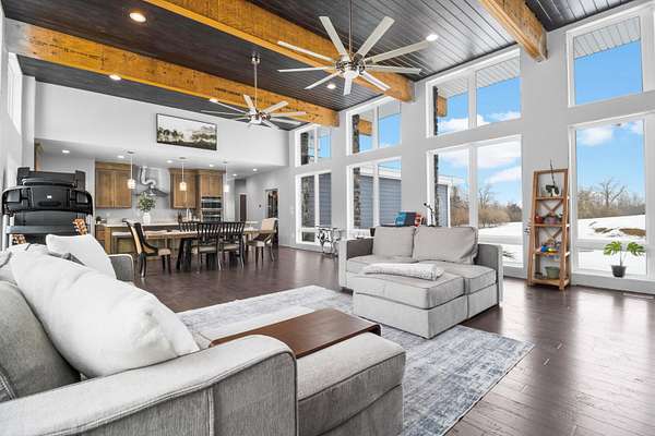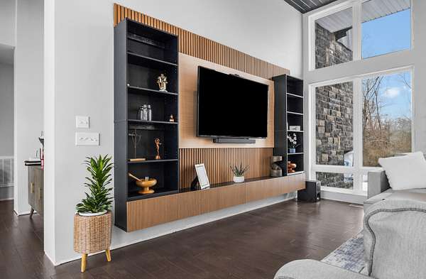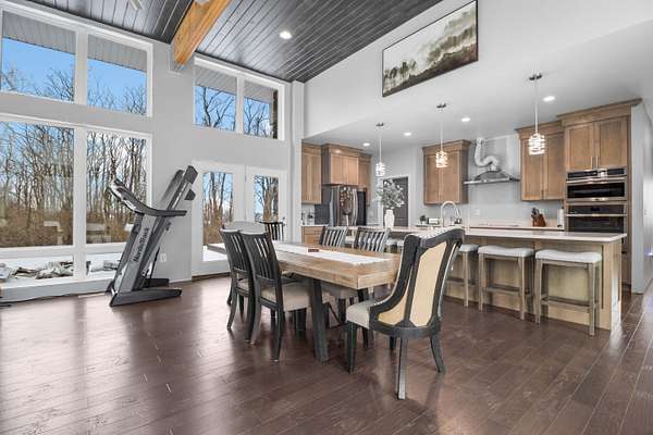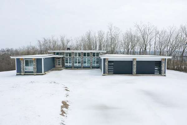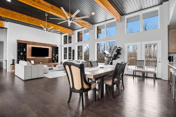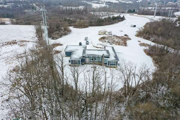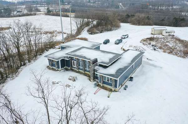 As soon as you drive up to the home, you immediately notice the privacy, setting, and architectural presence that make this property truly one of a kind. Located on 10.79 acres just five minutes from everything Richmond, KY has to offer, including quick access to I 75, this custom built mid century modern home offers a rare combination of acreage, location, and design seldom found in the Richmond market. Built in 2024, the home sits on a beautiful mix of open and wooded land, providing peaceful seclusion while remaining incredibly convenient to shopping, dining, schools, and interstate access. From the moment you enter, a warm and welcoming foyer leads you into expansive living spaces designed for both everyday living and entertaining. The heart of the home features an open concept living, dining, and kitchen area with massive windows spanning the entire back of the home, filling the space with natural light and serene views of the surrounding property. Extra tall ceilings with exposed beams enhance the architectural character, while a custom built in entertainment center anchors the living room. The dining area easily accommodates large gatherings, and the kitchen is a true showpiece featuring ceiling height cabinetry, an oversized island with seating for six, double wall ovens, abundant counter space, and a walk in pantry. This thoughtfully designed home offers three true en suite bedrooms, including two junior suites and a luxurious primary suite. Each bedroom includes its own private full bathroom, large walk in closet, and generous room size, making every space ideal for family or guests. The primary suite serves as a private retreat with a spa inspired bathroom featuring a freestanding soaking tub, walk in shower, wet room design, and an expansive walk in closet. In addition, the home includes a fourth bedroom or office, offering flexible space for a home office, guest room, or bonus room. The closet for this room has not yet been completed, allowing the next owner to customize it to their needs. Down the hallway, you will find a convenient half bath, a dedicated laundry room, side entry access, and direct access to the 1,271 sq ft attached garage, providing ample space for vehicles, storage, or workshop needs. The majority of the interior has been completed, and the home is now ready for its next owner to add the finishing details. This is a rare opportunity to own a new construction, custom built home on acreage in Richmond, KY, while still having the ability to personalize select final touches. A truly unique property offering privacy, modern design, and location all in one.