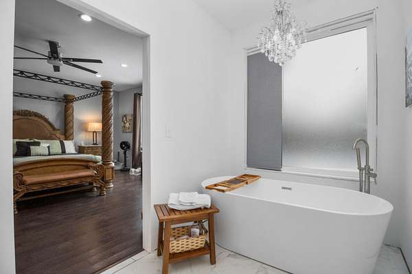 - Breakfast Bar, Entrance Foyer, Primary Downstairs, Soaking Tub, Walk-In Closet(s)