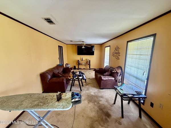 Est $1,755/moHome for sale on 32.5+/- acres located at 4926 S Highway 61 in Mound Bayou, Bolivar County. This residence features three bedrooms, two bathrooms, and 1,480 square feet of heated and cooled living space. Outside, the property includes a two-car carport, and both the front and back backyards are spacious, providing plenty of room for kids and pets to play. The land is currently being farmed with soybeans and corn, offering highway frontage for easy access and an excellent opportunity for building. The crop rent is $130 per acre. The home is just 5 minutes from Crawdad's in Merigold and 12 minutes from Cleveland.