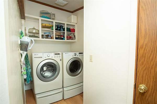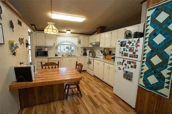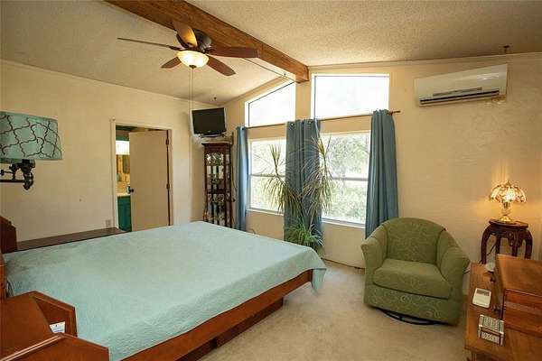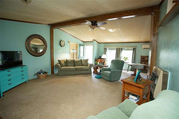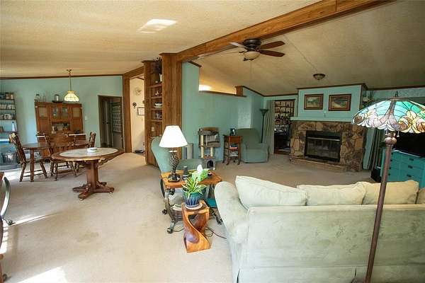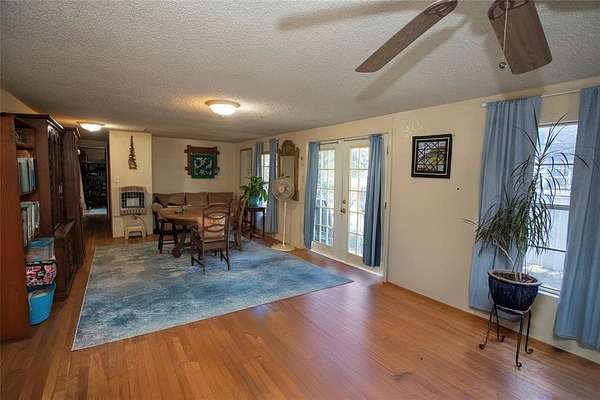 The property includes a large, connected five-bedroom residence (a manufactured and mobile home combined), providing immediate living or rental potential while you plan its future. The home features multiple living areas, a fireplace, and hardwood flooring in the older section. The land itself is heavily wooded with beautiful live oaks, features a pond, and is partially fenced.
