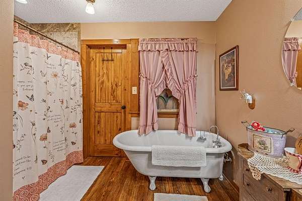 This one is really special! It is a beautiful custom built Fanning Construction home sitting on just over 27 acres of land! This property is located in the very desirable Huckabay school district! This home has been so well loved and cared for since the seller's built it! Sometimes life throws us a change up and now it is being offered up for someone else to come enjoy and love it as much as they do! The home features 3 bedrooms, 2 full and 1 half bath, it also has beautiful kitchen, wood burning stove, and the most peaceful study! You can't imagine how peaceful it is to sit on the porches and listen to the wind chimes! There is a custom built chicken coop, and an in ground concrete storm shelter! There are tons of deer, and all kinds of wildlife on the property! This place is located at the end of a private road, and the road only services two homes. The property is ag exempt, and so private but it has state of the art United Coop fiber internet! There is also a nice horse barn and shed on the property. It is also completely fenced! If life is a little too hectic for you and you are looking for a weekend place or primary residence that will afford you the utmost peace and quiet... well here it is!! Come take and look and experience just how special this place truly is! The pictures are fantastic but they don't tell the whole story about this one! You have to come experience it for yourself!!