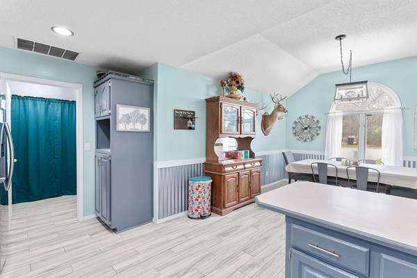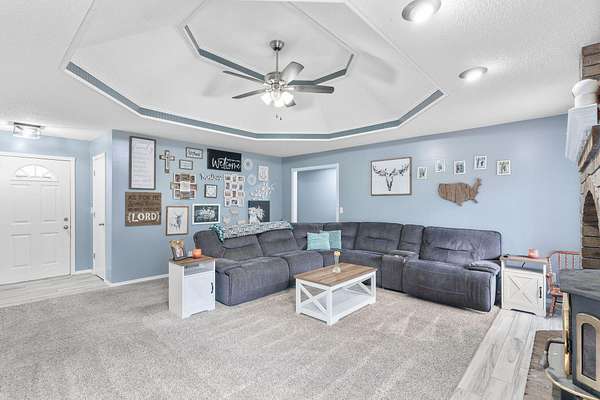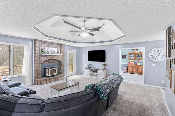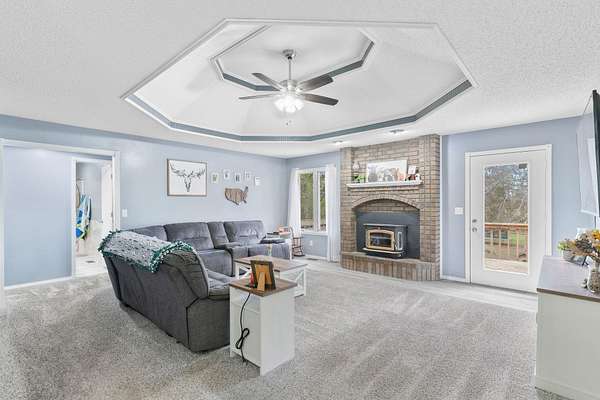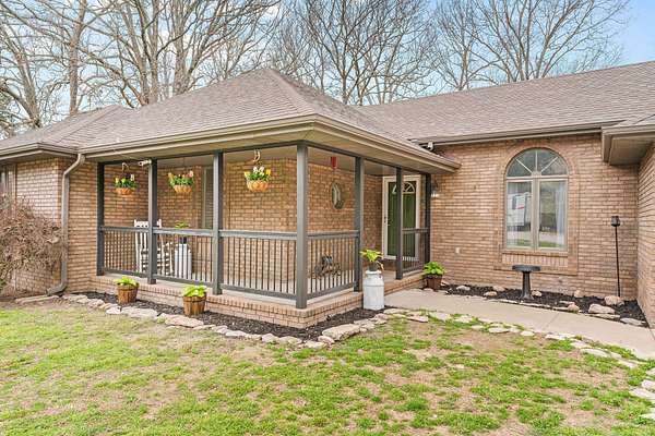 Tucked away on 4.3 acres in southeast Ozark, this all-brick 3 bed, 2 bath home offers a rare combination of privacy, space, and convenience. A private gravel drive, mature landscaping, and a welcoming covered front porch create a beautiful first impression. Inside, the living room features a cozy wood-burning fireplace, tray ceilings, and easy access to the back deck--perfect for hosting guests or enjoying quiet evenings at home. The kitchen offers abundant cabinetry, bar seating, and an open flow into the dining area, making it ideal for everyday living and gatherings. The spacious primary suite includes a walk-in closet and a private bath featuring a jetted soaking tub, while two additional bedrooms share a full bathroom. Step outside and enjoy peaceful country living with a large back deck, mature shade trees, and your own private pond-recently stocked with catfish and bass-perfect for fishing, relaxing, or taking in quiet mornings and evening sunsets. All of this just minutes from Highway W, offering quick access to town while still enjoying the peace and privacy of your own acreage retreat.