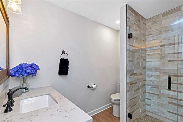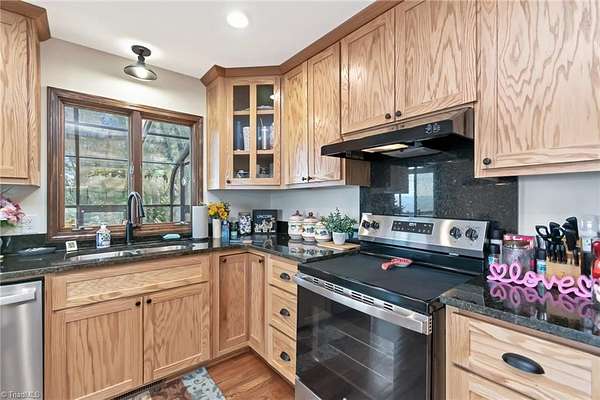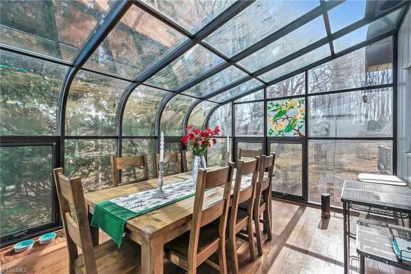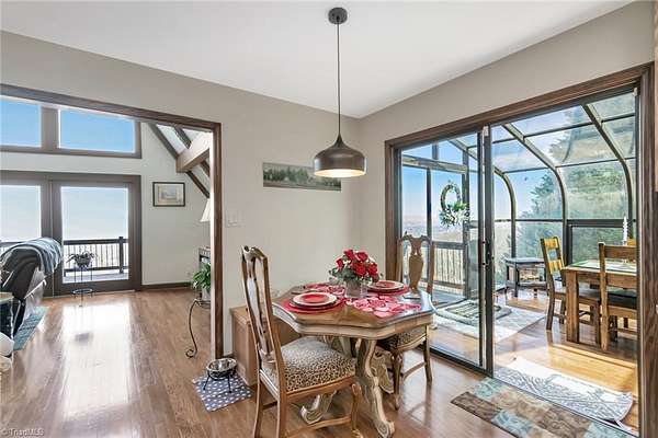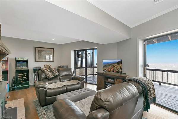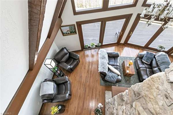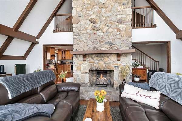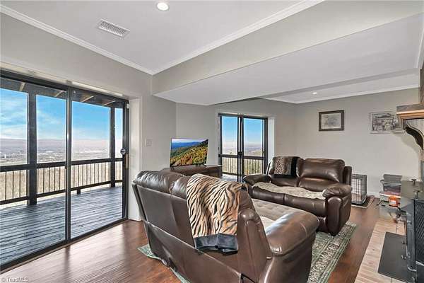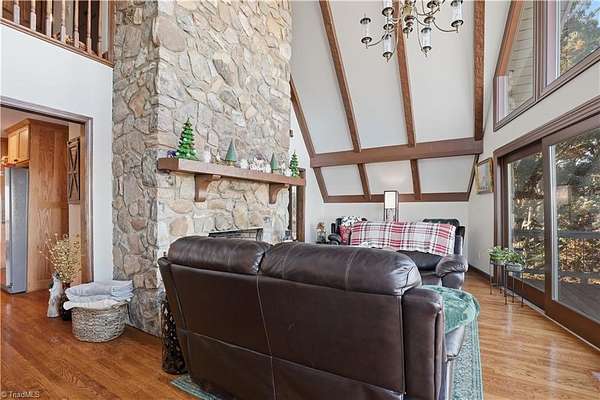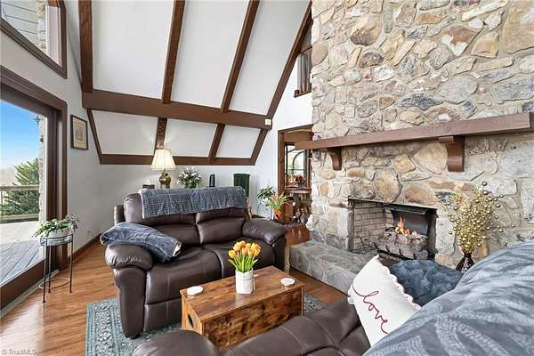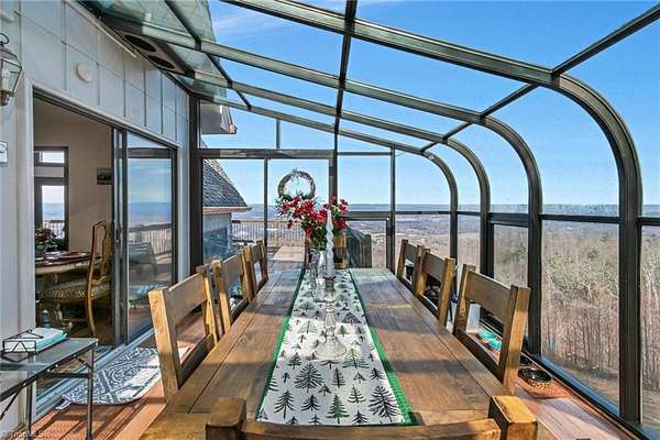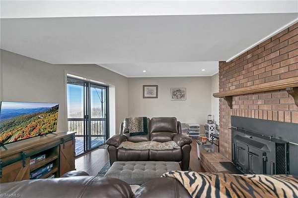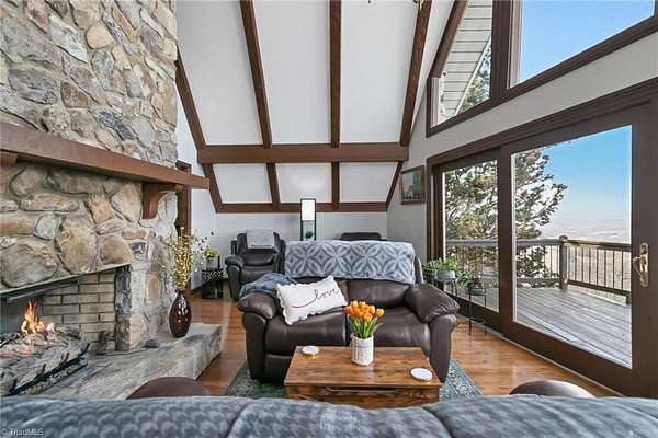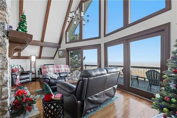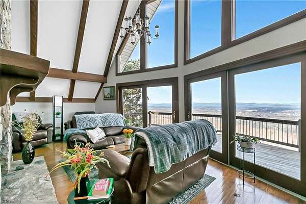 Newly remodeled mountain retreat with sweeping long-range mountain views showcased through a wall of windows & a vaulted great room anchored by a stunning stone hearth with gas log fireplace.Enjoy peace of mind with a new roof, HVAC & kitchen cabinets and appliances.New hardwood floors run throughout the living areas. Glass-enclosed sunroom with a dramatic arched ceiling & panoramic views, this inviting space is perfect for dining, entertaining, or relaxing year-round while enjoying natural light & the beauty of the outdoors an exceptional bonus room that seamlessly blends indoor comfort with an outdoor feel. The primary bedroom ensuite is on the main level with a newly remodeled bathroom. Upstairs there is another bedroom, a new bathroom & a bonus room. The finished basement adds flexible space for guests, recreation, or a home office with a wood-burning stove, perfect for relaxing and taking in the view.Huge deck for stargazing.Double car garage & ample parking. Review agent remarks.
