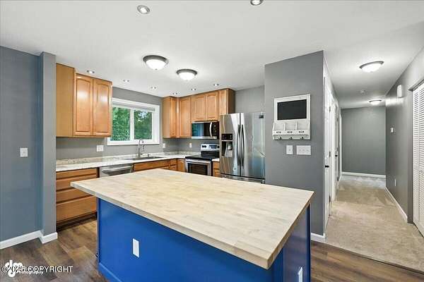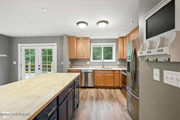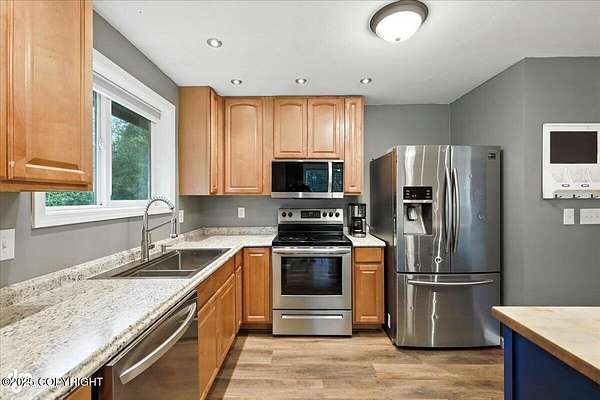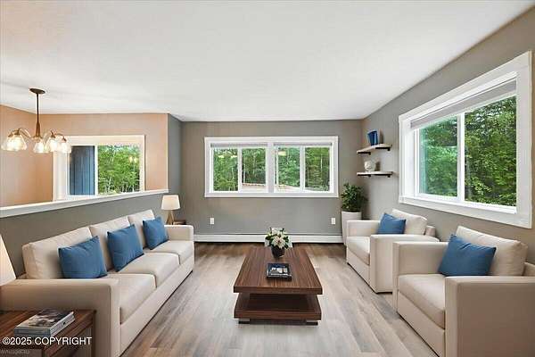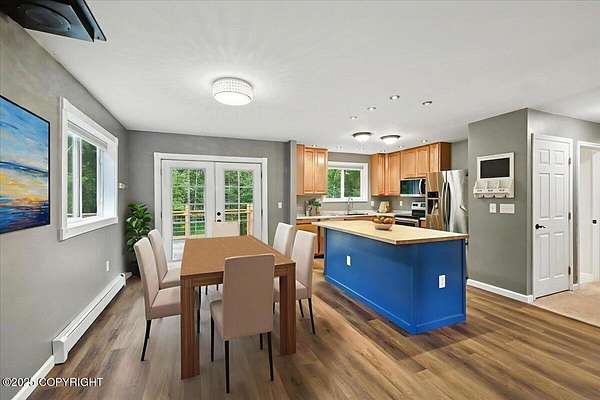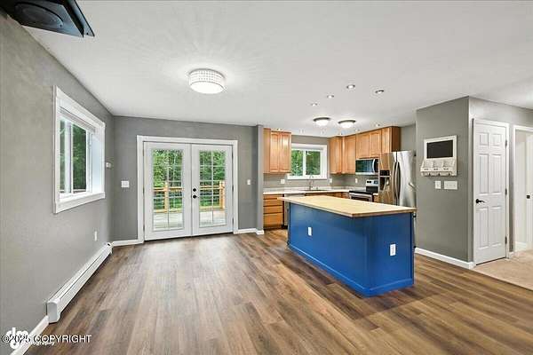 If you're searching for privacy, space, and storage for all your Alaska hobbies, this is the one! Nestled on 1.69 acres, this well-maintained home offers four bedrooms, an office, two bathrooms, and a two-car attached garage--plus a bonus detached two-car garage perfect for your toys, tools, or workshop needs. You'll love the brand-new greenhouse for growing year-round, & a pen for a goat or pig! Along with a U-Shape driveway and blackout blinds. Whether you're homesteading, adventuring, or just need room to breathe, this property delivers the best of Alaska living.