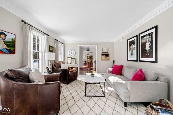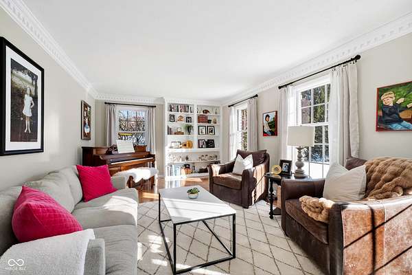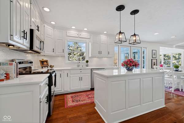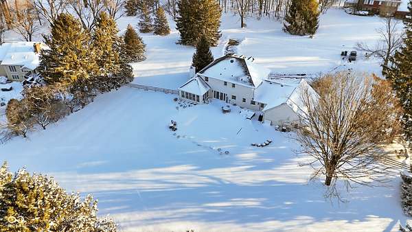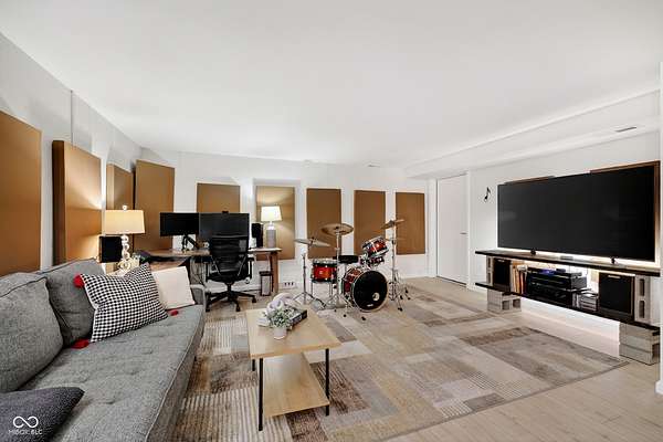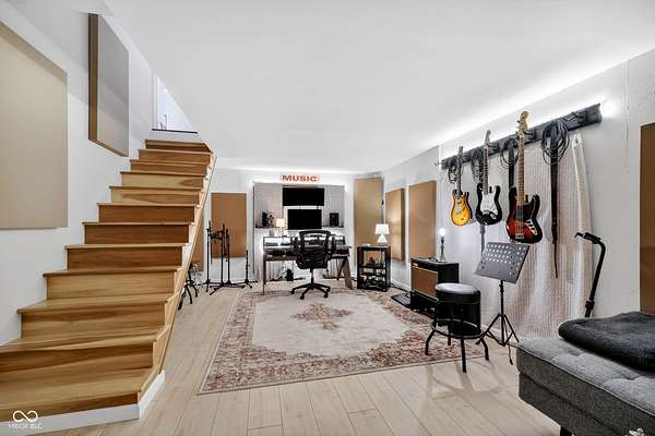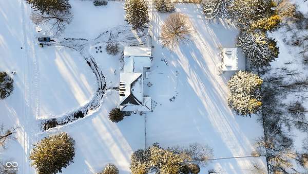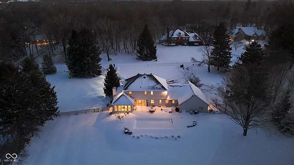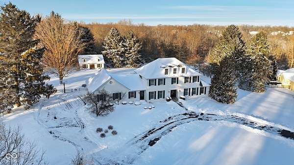 4930 Wintergreen Lane - Woodbrook Downs Estates. Rare, private 1.5 acre retreat just minutes from downtown Carmel. Sited behind the property is a one acre meadow and buffered by 25 acres of woods, this distinctive 3,600 square foot home offers 4 bedrooms, an office, a finished, soundproofed basement, and a 3 bay garage - plus an outbuilding formerly used as a small stable. Light-filled living is at the heart of the home: a 2014 family room addition converted the former screened porch into a four season sitting room with HVAC and three all windowed exterior walls framing views of the 20,000 gallon heated in-ground pool and wooded yard. The expansive paver pool deck provides roughly 2,500 sq ft of outdoor entertaining space. Interior highlights include uniform natural wood flooring on the main level, updated quartz countertops and resurfaced kitchen cabinets, and a remodeled upstairs bath. The lower level is a standout - a professionally constructed, soundproofed music studio with double 5/8" drywall, acoustic underlay and custom panels that also makes an ideal home theater or gaming room. The basement also offers abundant storage. Practical systems have been well maintained or replaced: roof and gutters (2017), HVAC (2013), driveway resurfaced (2019), water systems (2019), sewage lift station (2024), pool gas heater (2023) and a new sump pump (2025). A special property for buyers seeking privacy, generous indoor/outdoor living and unique amenities - including the versatile outbuilding and easy access to downtown Carmel.