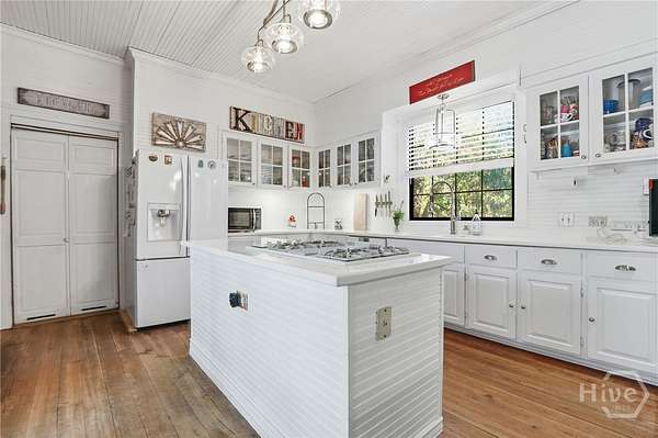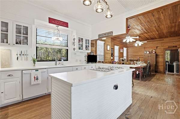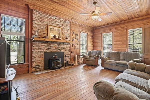 Rare find in SEB School District! Only 3 miles off I-16, 25 minutes from the Hyundai plant, and 45 minutes from Savannah. True country living with this character-filled farmhouse that has over 3700 square feet of timeless charm on 50 acres, offering unmatched privacy with room to grow. This property provides a mix of pasture and wooded acreage with ample space for barns, a garden, animals, livestock, hunting or simply a space to relax. This 4-bedroom 2.5-bath home provides a spacious bonus room, perfect as a playroom, second family room, or flexible living area. This home features heart-pine floors, walls, and ceilings, a large kitchen with solid surface countertops, a cozy fireplace with an insert, a staircase with a chairlift, a Generac generator, and much more. Don't miss out on this beautiful piece of property! Call today and schedule a showing!