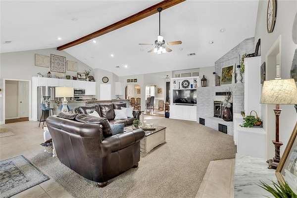 Inside, you'll find a wide-open layout, smart split-bedroom design, and a private primary suite with a spa-like bath. Sip your morning coffee on the inviting front porch, then unwind in your backyard oasis -- nearly 500 sq ft of covered patio with a wood-burning fireplace, built-in grill, and even a custom smoker or pizza oven. (Yes, really!)