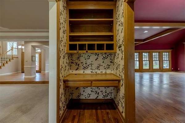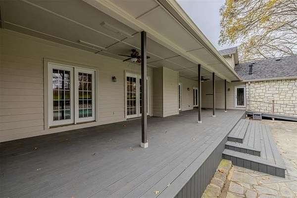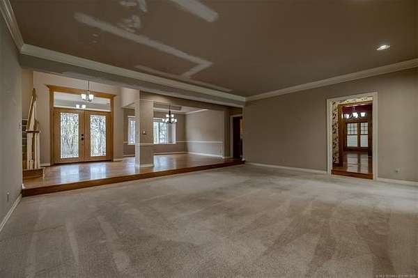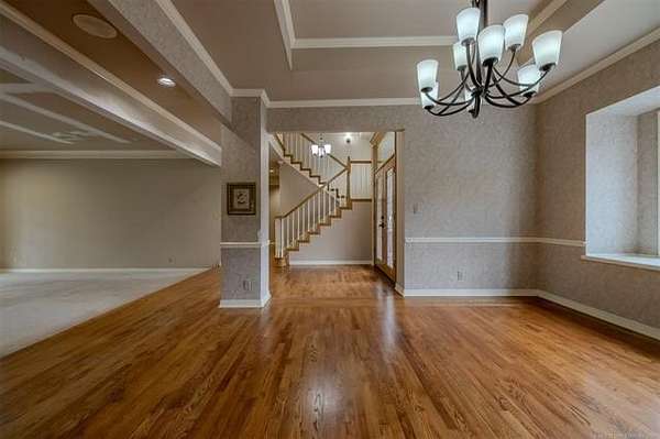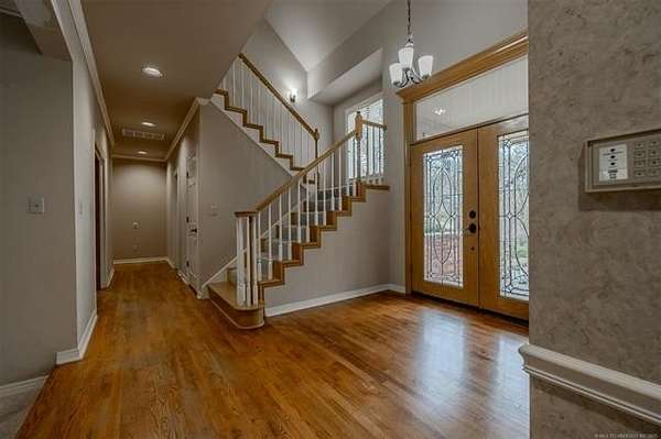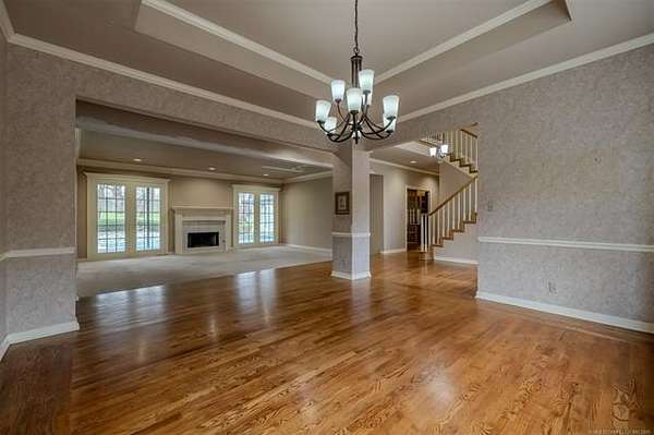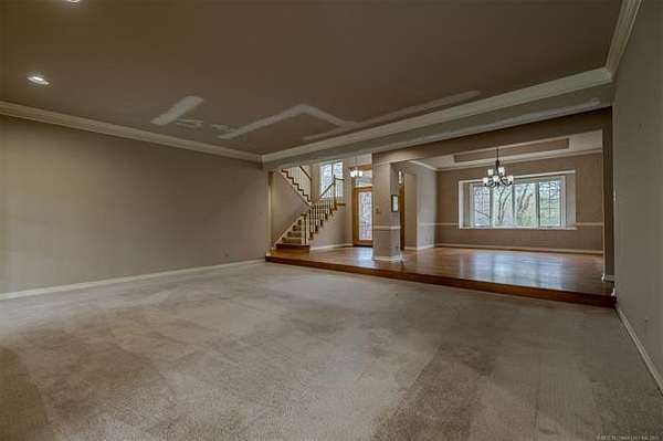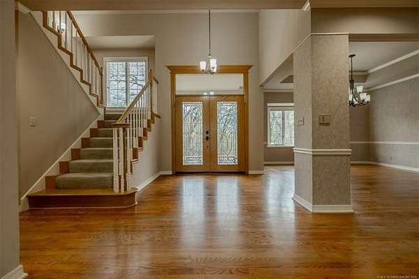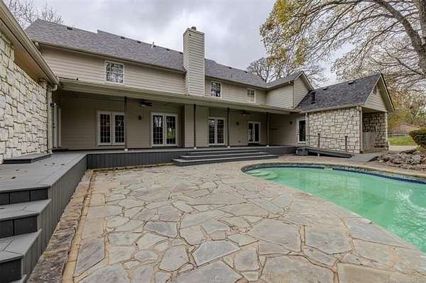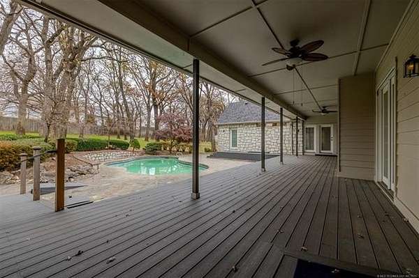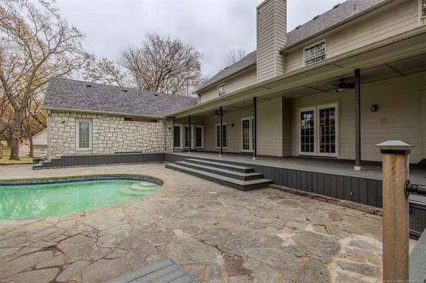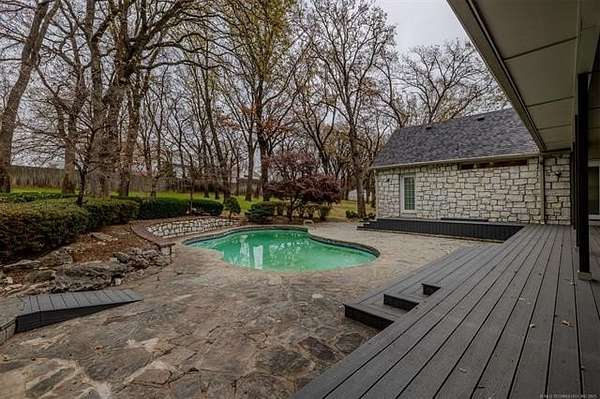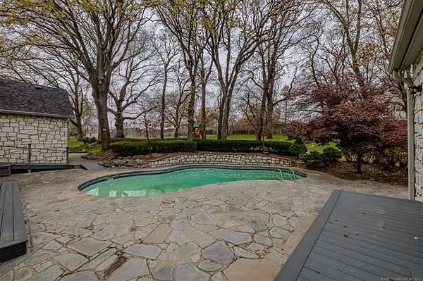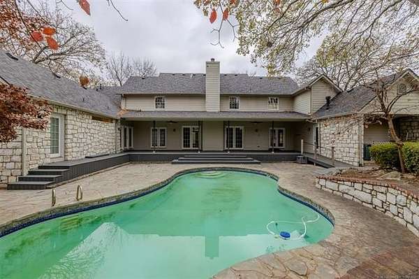 Rare Stonebridge Opportunity! Spacious 5300 sqft (AP) home on 2+ serene acres in Jenks Southeast Schools. Features 4 large bedrooms with walk in closets, 5 full baths, beautiful wood floors, main floor primary suite with adjoining office + 1 guest bedroom down, 4 car garage + portico/breezeway, 3 yr old architectural roof. Enjoy mature trees, water feature, professional landscaping, large Trex deck and inground gunite pool. Great bones and endless potential to make it your own. Stonebridge listings are few and far between don't miss this private estate setting.