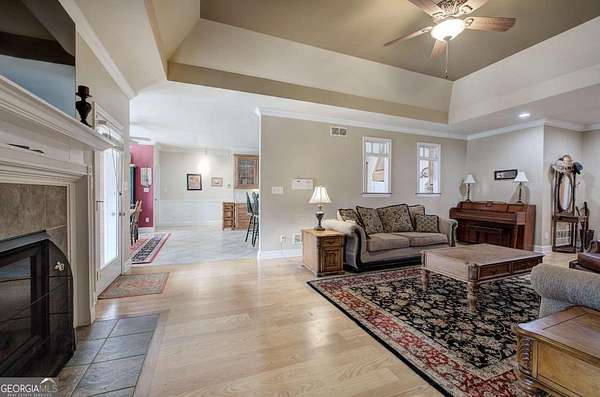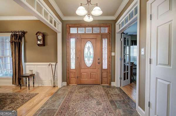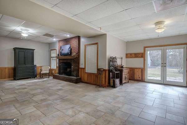 Rare opportunity to own a four sided brick custom ranch home situated on approximately 4.5 acres with a massive detached workshop. This exceptional property offers four bedrooms and 3.5 bathrooms, including two primary suites with one conveniently located on the main level. ThIS traditional four sided brick home is privately positioned on 4.5 acres and located just minutes from the city. The interior features hardwood flooring throughout the main living areas and tiled bathrooms. The gourmet kitchen is equipped with custom wood cabinetry, a large island, breakfast bar, and a separate breakfast area, perfect for everyday living and entertaining. Additional spaces include a formal dining room and a private office with built in bookcases. The main level primary suite features a tray ceiling. Enjoy outdoor living on the screened back porch overlooking the peaceful property. The finished basement provides exceptional additional living space and includes a full kitchen, living room with fireplace, second primary bedroom with en suite bathroom, bonus room, second full bathroom, office, and a separate private entrance, ideal for extended family or guests. The enormous outbuilding/workshop includes a twenty foot overhang, heavy duty shelving, three phase power, a bathroom, and new gutters. The home also features a newer roof, septic system, and a newer Trane heating and air conditioning system with an air purifier. This is an incredible opportunity to own private acreage while remaining close to shopping, schools, and dining.