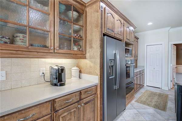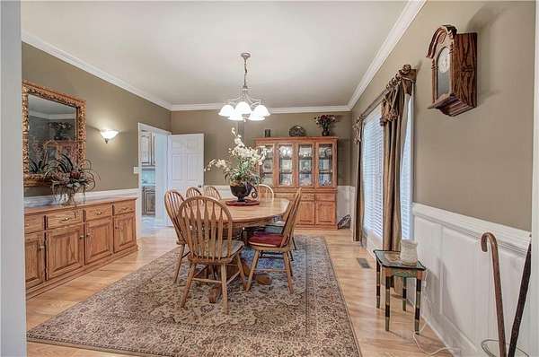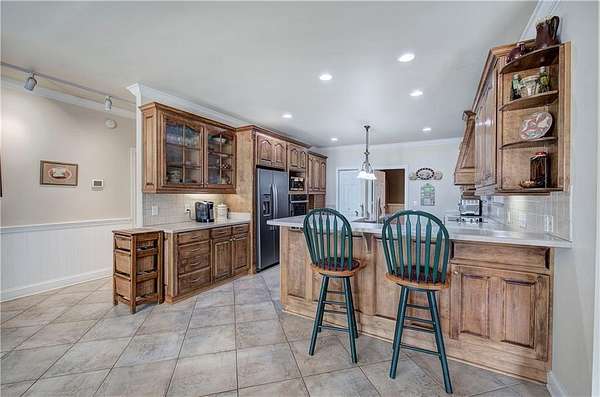 Rare opportunity to own a four sided brick custom ranch home situated on approximately 4.5 acres with a massive detached workshop. This exceptional property offers four bedrooms and 3.5 bathrooms, including two primary suites with one conveniently located on the main level. ThIS traditional four sided brick home is privately positioned on 4.5 acres and located just minutes from the city. The interior features hardwood flooring throughout the main living areas and tiled bathrooms. The gourmet kitchen is equipped with custom wood cabinetry, a large island, breakfast bar, and a separate breakfast area, perfect for everyday living and entertaining. Additional spaces include a formal dining room and a private office with built in bookcases. The main level primary suite features a tray ceiling. Enjoy outdoor living on the screened back porch overlooking the peaceful property. The finished basement provides exceptional additional living space and includes a full kitchen, living room with fireplace, second primary bedroom with en suite bathroom, bonus room, second full bathroom, office, and a separate private entrance, ideal for extended family or guests. The enormous outbuilding/workshop includes a twenty foot overhang, heavy duty shelving, three phase power, a bathroom, and new gutters. The home also features a newer roof, septic system, and a newer Trane heating and air conditioning system with an air purifier. This is an incredible opportunity to own private acreage while remaining close to shopping, schools, and dining.