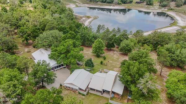 Welcome to Monarch Ranch in Grassy Pond Ranches: Private Oasis with Two Homes, Equestrian Access and Endless Possibilities! Escape to your private 9.8-acre sanctuary on Grassy Pond, featuring two meticulously maintained homes, a versatile barn, and over 300 feet of waterfront on spring-fed Grassy Pond! This unique property offers the perfect blend of luxurious living, practical amenities, and abundant space for recreation or even a small farm. The main residence, custom-built by a builder as his personal home, boasts 2,496 sq ft of thoughtfully designed living space. This 3-bedroom, 2.5-bathroom home offers incredible flexibility with abundant storage throughout (seriously, closets everywhere!). You'll appreciate the convenience of two water heaters in the main house, ensuring a consistent hot water supply. The chef's kitchen is a culinary dream, equipped with a wall oven, cooktop with a custom vent hood, and custom cabinetry with all the bells and whistles - you'll want to explore the pantry, it's a ''WOW''! Enjoy indoor/outdoor living on the wrap-around porch, perfect for entertaining and taking in the serene surroundings. The formal dining room can easily serve as an office or an additional bedroom, adapting to your needs. A convenient half bath and laundry room are located near the back door. Just steps away, the charming 960 sq ft guest house provides comfortable accommodations with an efficiency kitchenette, a large great room, a spacious bathroom with a walk-in shower, and a huge bedroom. This adorable retreat also features great storage, an 8x40' lean-to, and a tankless on-demand water heater for efficient hot water whenever needed. The impressive barn/detached garage offers incredible utility, currently accommodating 4 cars and an RV or boat with each bay measuring 12x36' and featuring roll-up doors. A 14x36' carport provides additional covered parking. Inside the barn, you'll find a climate-controlled 9x10' office. For those with agricultural aspirations, the garage can easily be converted into a livestock barn, or the lean-to area could be transformed into stalls. A fenced area around the barn is perfect for pets. Located in Grassy Pond Ranches, a sought-after community known for its numerous equestrian farms, this property offers an unparalleled opportunity for horse enthusiasts. With a private gate providing direct access to the Washington County Water Management District, you'll have miles and miles of trails right at your fingertips. This property would be an absolute dream for someone with horses who desires the opportunity for extensive cross-country riding. This exceptional Monarch Ranch is more than just a property; it's a lifestyle. Imagine hosting unforgettable gatherings, enjoying peaceful lakeside mornings, or pursuing your farming and equestrian dreams. Don't miss this rare opportunity!