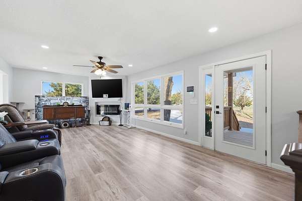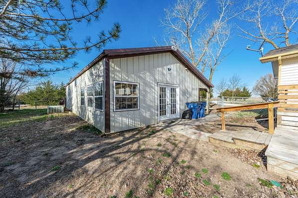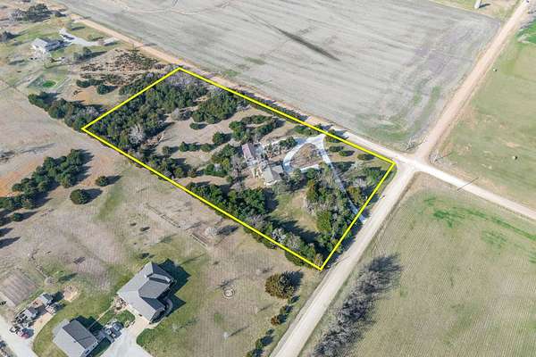 From Hwy 254, go North on Andover Rd/SW Butler Rd for 1.6 mi. Turn slightly right and continue 0.4 mi, then follow NW Butler Rd for 5 mi. Turn left on NW 50th St for 1 mi, then left on NW County Line Rd (N. 159th St E). Home is on the left. House is located on a corner lot