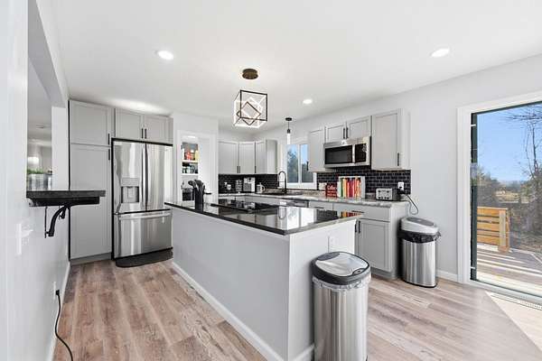 Welcome to your private country retreat on 4.3 acres! This beautifully updated raised ranch located on a corner lot offers peaceful country living with stunning panoramic views and mature trees. So much natural light and bright spaces everywhere. Featuring 5 bedrooms, 4 bathrooms, and an oversized 2-car garage, the home includes an open floor plan with a cozy fireplace and a fully renovated kitchen with granite countertops, LVP flooring, a large island, open concept and modern appliances. The finished basement adds a spacious family room, second fireplace, additional bedrooms, and a bonus room. Enjoy the outdoors on the large two-tier deck, plus a new circular concrete driveway and charming front porch. A standout feature is the 24x50 workshop with HVAC, with it's own full bathroom. Recent updates include: new concrete driveway, drainage improvements, new propane tank, whole-home generator, updated electrical service, finished basement office, main-floor and basement laundry hookup, and security system. Schedule your private showing today!