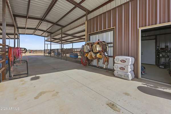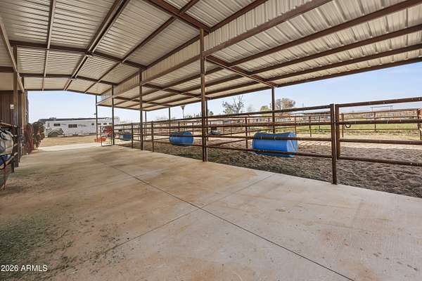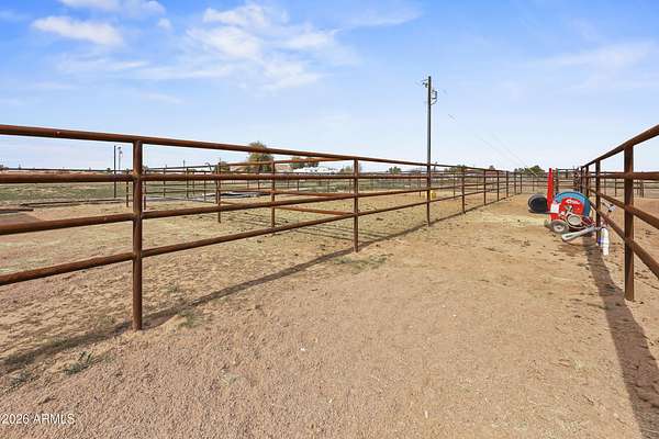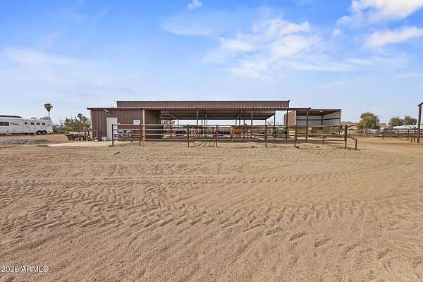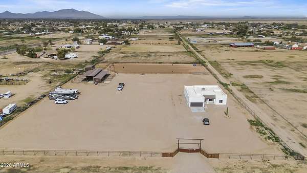 2025 construction in beautiful Maricopa offering the perfect blend of modern comfort and equestrian amenities. This 3-bedroom, 2.5-bath home features a bright open floor plan with contemporary finishes and pride of ownership throughout. The fully gated property includes a brand-new arena, barn, and hay shed, ready for horses or a hobby farm. The land is plumbed and piped for tree and landscape irrigation with irrigation water rights plus city water service. Inside, enjoy spacious bedrooms, an entertainer's kitchen, a relaxing primary suite, and a garage with upgraded flooring. 2 full service RV hookups for you to bring your friends. Plenty of room for a shop, pens or more outbuildings. Come see it for yourself!