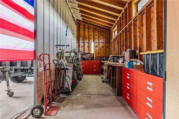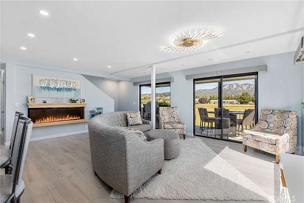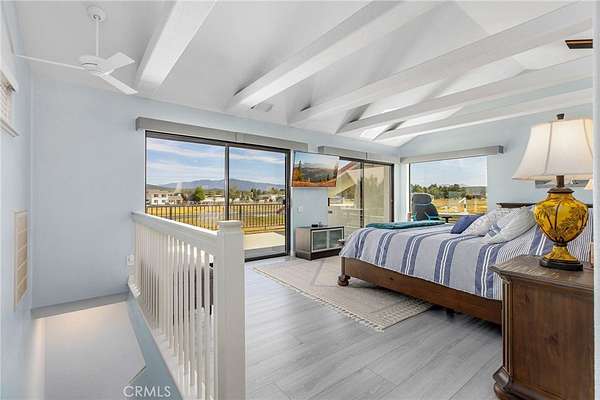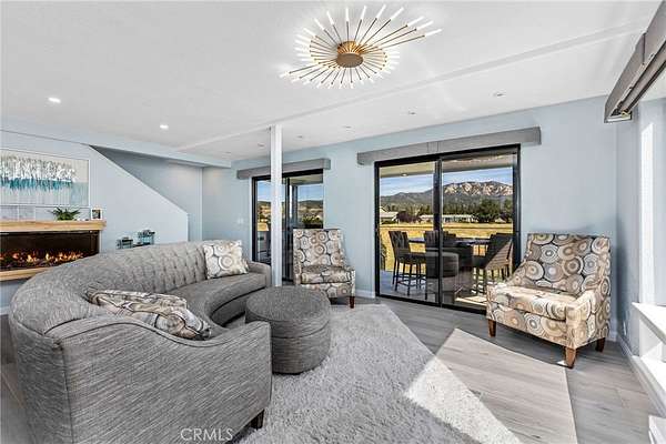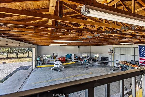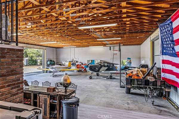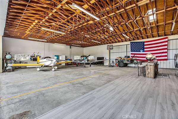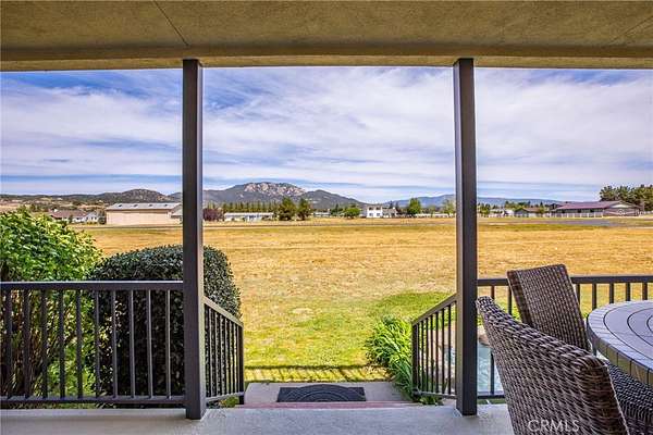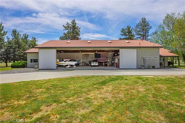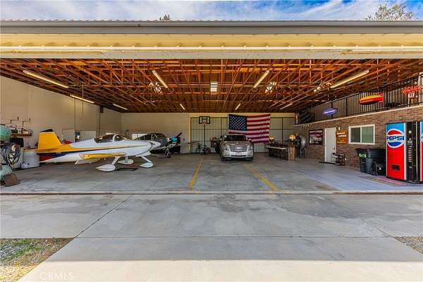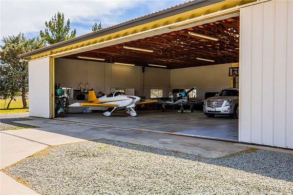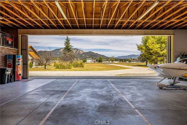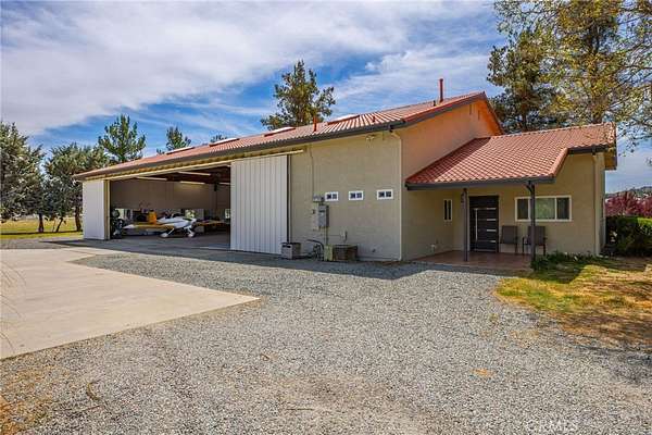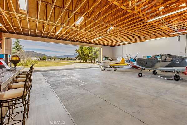 For those dreaming of a life where you can fly, ride, and relax against the stunning mountain scenery, this is your moment. This unique aviation property with its own private HANGAR offers a lifestyle and environment you cannot find anywhere else in California. The 2.81-acre private park setting features a beautifully upgraded 1,793 SF primary home and a 4,500 SF hangar with direct access to a 3,600' private paved airstrip (54CL) with full VASI. The property is also equestrian-ready, with room for horses and miles of direct-access trails. The parcel is landscaped with mature trees and plantings to offer a serene, private, retreat setting. Plenty of room for horses with miles of direct access trails. Let's check out the features of this opportunity: The primary home is 1793 SF with 2 downstairs bedrooms, 1 full bathroom and upstairs primary bedroom spacious suite with walls of glass windows and 2 balconies taking in stunning views. The living space is elegant and modern. Indoor space flows out onto a covered deck over a pond/wading pool water feature. Upgrade highlights include complete exterior and interior paint, vinyl and ceramic tile flooring, updated primary shower with oversized tile and frameless glass door, auto voice activated blinds, lighting fixtures, decorative electric fireplace, rain gutters, modern entry door and replaced AC compressor. The kitchen features blue pearl granite and custom cabinetry. The roof is MET Tile which withstands heavy weather and there is a standard 2 car garage with direct access to the main home. Decorative grounds lead to a custom 4500 SF hangar that offers SO much more than covered airplane parking. This space was efficiently and thoughtfully designed to include a 1000 SF ADU and Office spaces (permitted as office space but ADU's are now allowed) with beautifully remodeled modern kitchen and full bathroom, 2 office spaces, 2 bedrooms and open family room space. The Hangar portion also offers a fun entertaining bar area (bar included), separate workshop and storage space and a fully outfitted home gym!!! This hangar will house 2-3 airplanes and leads directly to the runway. All upgrades are modern and beautifully designed to offer a private living space you will be proud to entertain in and enjoy. Lake Riverside is a gated private community with amenities including a 55 acre lake, lakeside tot lot, pool, sports courts, equestrian arena and so much more only 25 min from Temecula! A rare and beautiful opportunity.