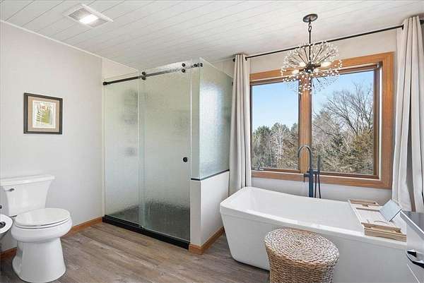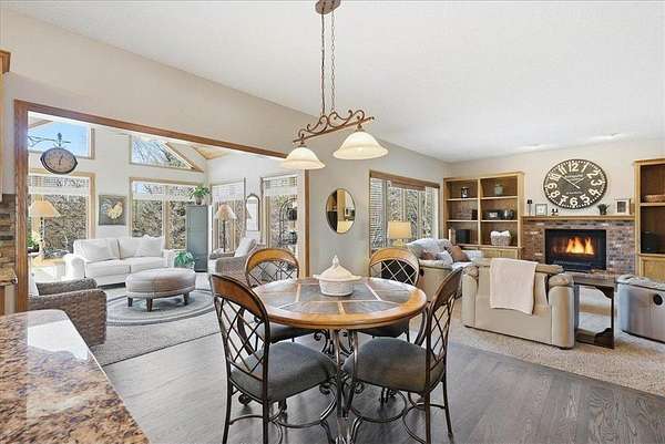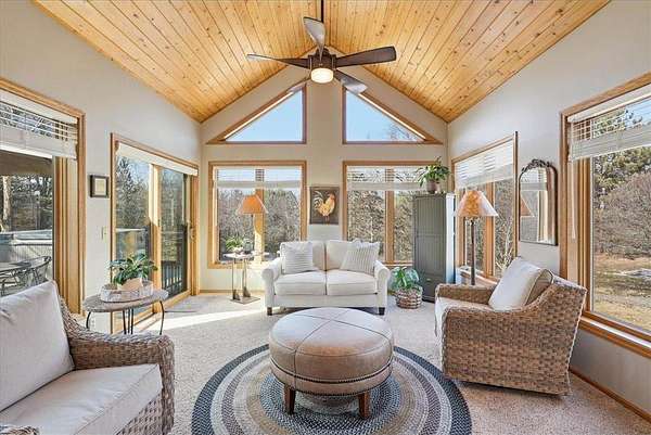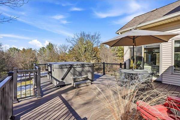 Est $4,120/mo1995 built 3 bedroom, 4 bath home on 4+ acres, Gas Fireplace in living room, bathroom and kitchen remodeling done. roof 17 years old, 6 panel doors, irrigation, high eff. furnace new in 2015, central air also 2015. 6 new windows 2018 ish, 2 gas water heaters, owned water treatment system, wood ceilings in sun room. vinyl siding w/brick. Blacktop driveway. hot tub and pool table not included. Fiber for internet. Xcel elec. Composite deck.