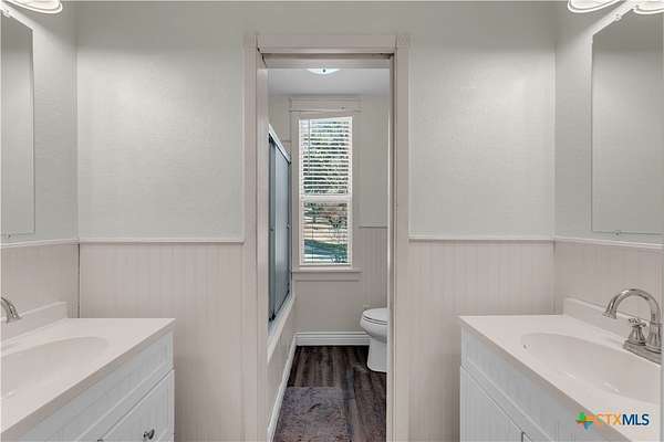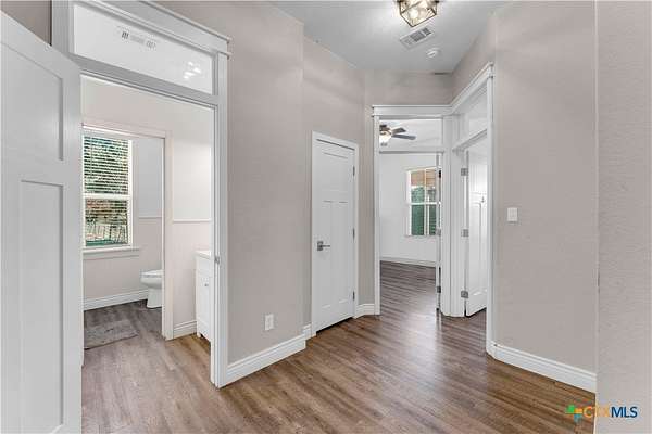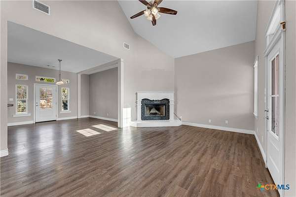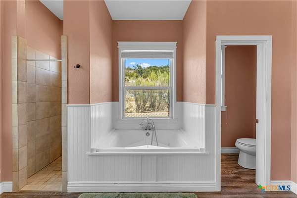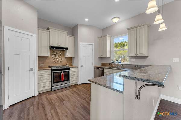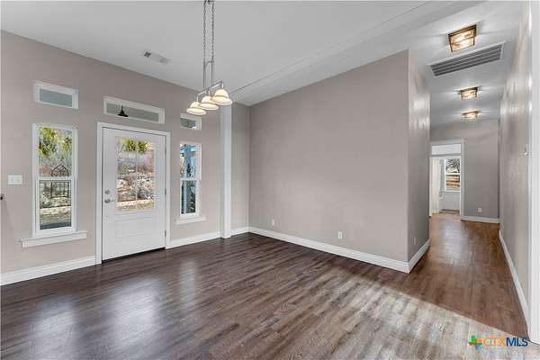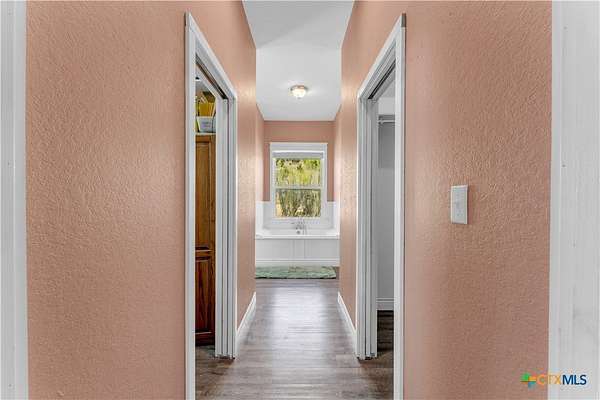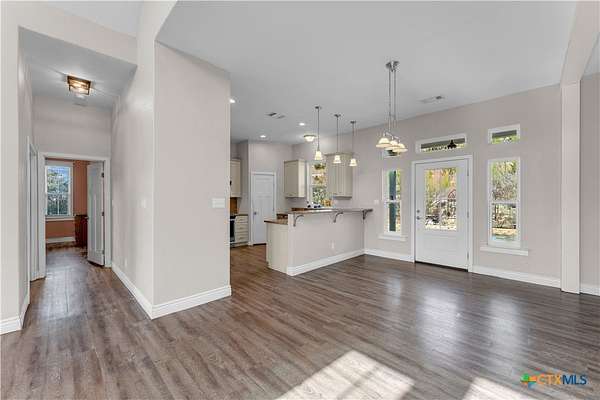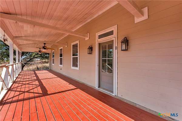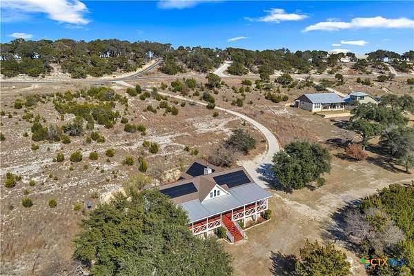 Located in the gated subdivision of Summit Springs, this 3-bedroom, 2-bath home offers 2,311 sq ft of thoughtfully designed living space on 3.25 acres. Built in 2017, the home features high ceilings throughout, laminate flooring, granite countertops, stainless steel appliances, a dedicated office, a versatile loft that serves as an extra living space, a tankless water heater, and an owned water softener. The primary suite includes his and her walk-in closets, separate granite-topped vanities, a soaking tub, and a separate walk-in shower, while the secondary bathroom also offers dual vanities for added convenience. A large covered front porch and the 3.25-acre property provide so much potential for outdoor living, entertaining, or future enhancements, all within a peaceful Hill Country setting.