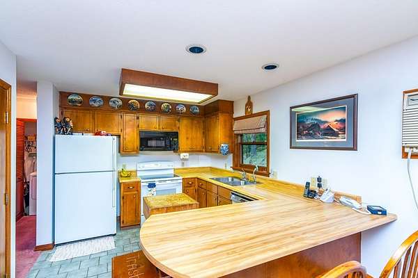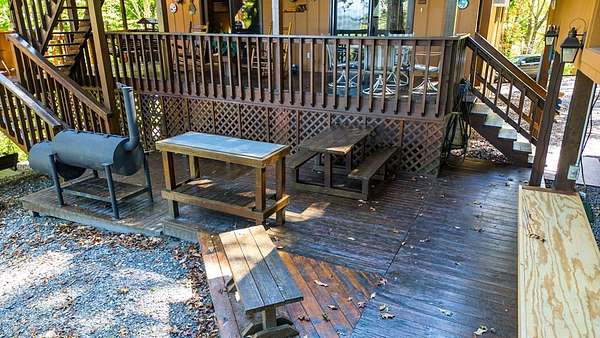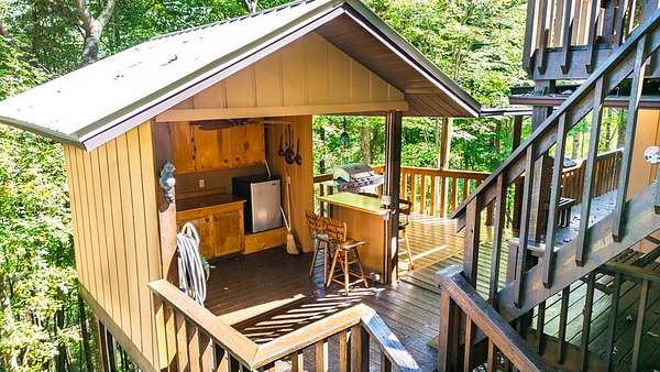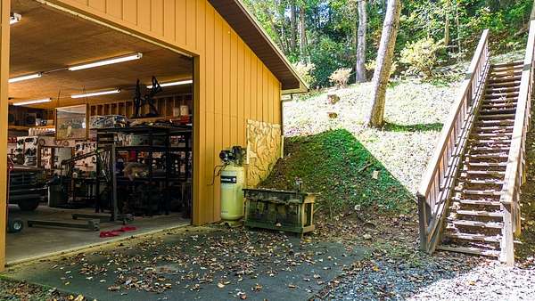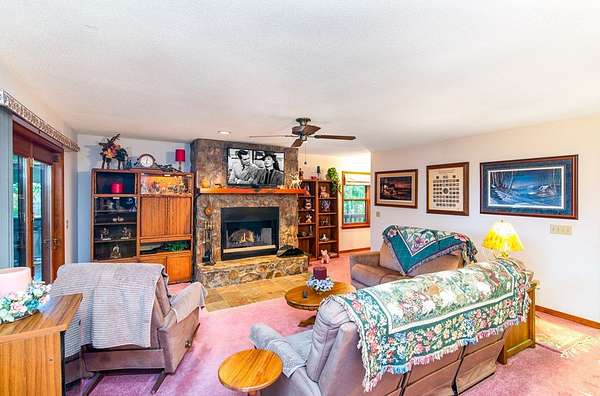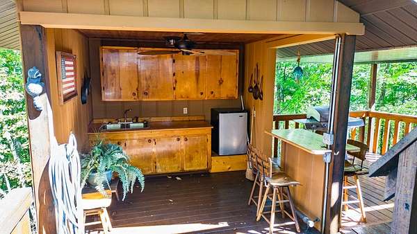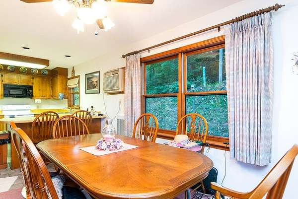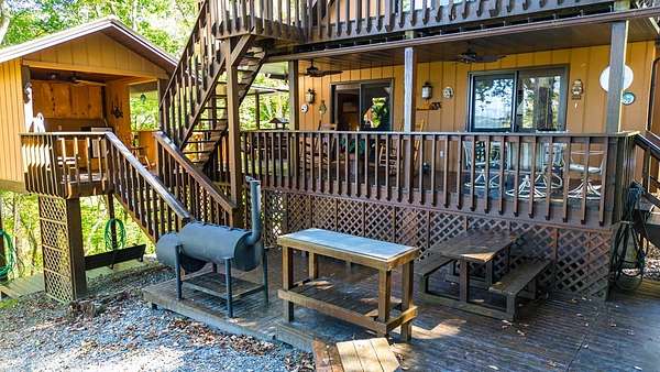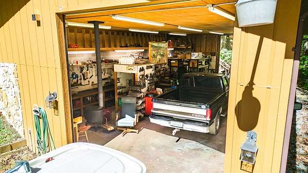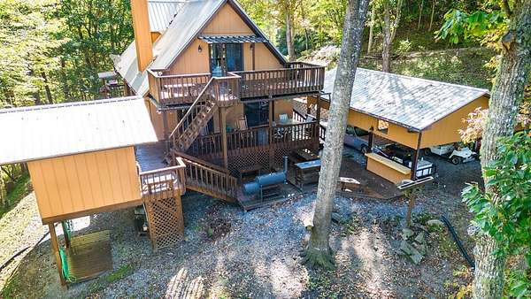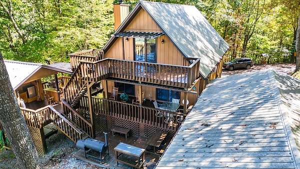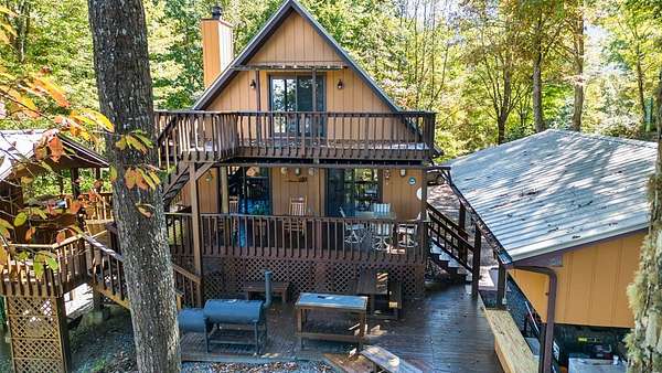 Experience the charm of mountain living in this well-maintained, move-in ready cabin featuring breathtaking year-round views, no restrictions, all on 14.69 ac. Mature landscaping with sprinkler system. Thoughtfully designed floor plan with great flow and ample storage. Home designed as a 3-bedroom with a 2-bedroom septic permit. Primary bedroom has deck access to enjoy nature & updated bath on the main level with newer toilet, vanity, & fixtures, second-level bath also features newer toilet & fixtures. Two half baths (main level & basement) for convenience. Tile floors in baths & kitchen, ceiling fans, & recessed lighting throughout. Beautiful Stone fireplace plus individual wall heaters in every room for optional zone heating. Split heat pump, backup heat, whole-house generator, & security system. Main-level laundry located in the hallway. Fully furnished with extras! Full basement with additional heated area, office, half bath, & wood storage bin. Covered decks with outdoor kitchen for gatherings with a mountain backdrop. Private & community well access. Roof & HVAC 22/23. Detached 26x41 garage, heated, RV parking, automatic doors. Extra parcels-great for further building!