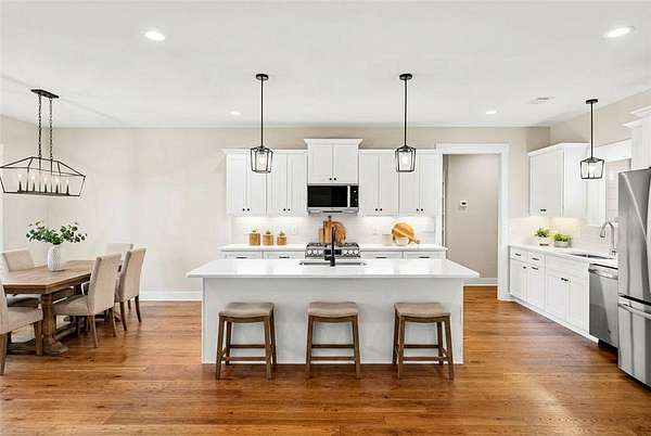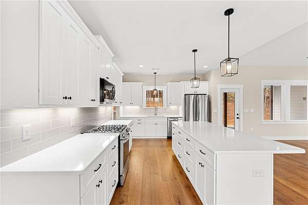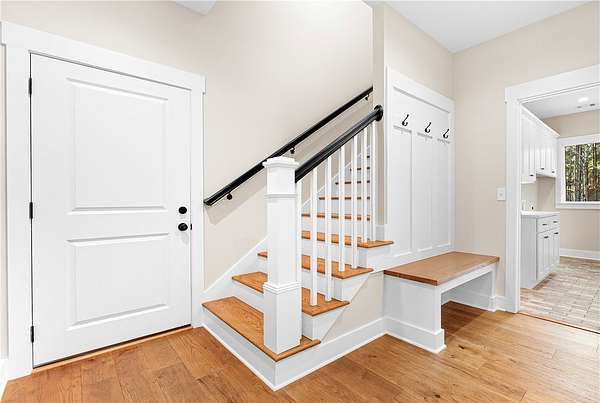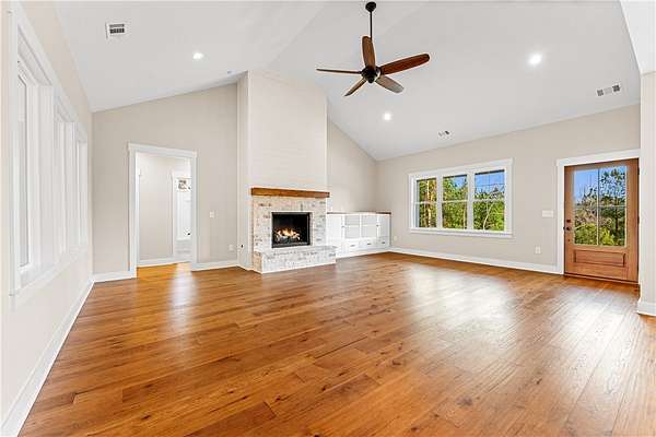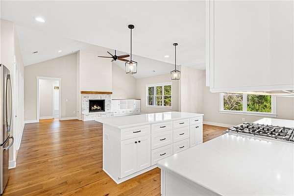 If craftsmanship and attention to detail matter to you, this upscale, brand-new home in Harbor Point deserves your attention. Built by RDM Custom Homes - a local builder with decades of hands-on experience and a true "one home at a time" approach - the quality and care are evident from the moment you step inside. The spacious open floor plan showcases soaring ceilings, rich hickory hardwood floors, and a stunning brick fireplace with natural gas logs. The great room flows effortlessly into the dining area and oversized kitchen, creating a bright and inviting space designed for both everyday living and entertaining. The kitchen is a true showpiece, featuring abundant custom cabinetry, quartz countertops, tile backsplash, a gas range, and an expansive island perfect for gathering. Just off the kitchen is a thoughtfully designed organizational hub - a large walk-in pantry with custom shelving, a beautifully tiled laundry room with plentiful cabinetry and natural light, and a drop zone complete with built-in bench and classic Craftsman millwork. The private primary suite offers a vaulted ceiling and a generous 15' x 17' bedroom retreat. The spa-inspired bath includes dual vanities, a soaking tub, an oversized tiled shower with bench, private water closet, linen storage, and a spacious walk-in closet. Upstairs, a finished bonus room with full bath, large walk-in closet, and mountain views provides incredible flexibility - ideal for a home office, media room, guest suite, or recreation space. Two additional generously sized bedrooms are thoughtfully positioned on the opposite side of the home and share another full bath. Outdoor living is just as impressive. Two covered porches invite you to relax and entertain, including an approximately 32-foot rear porch - perfect for hosting gatherings, watching the game, or simply enjoying the peaceful wooded setting. The oversized garage offers ample storage and convenient interior access, while the walk-in attic with a large floored area provides even more space for organization. Harbor Point is a gated community offering dedicated boat and trailer storage and is within walking distance to Stamp Creek Landing boat ramp for easy access to beautiful Lake Keowee. The location provides quick access to Seneca, Clemson, shopping, dining, mountain escapes, and nearby waterfall hikes - all while maintaining a quiet, private setting. And with a street name like Quiet Pine Road, the lifestyle truly speaks for itself.