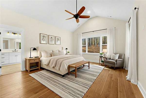 - Bath In Primary Bedroom, Bathtub, Bookcases, Built In Features, Cathedral Ceilings, Dual Sinks, Fireplace, Quartz Counters, Separate Shower, Smooth Ceilings, Walk In Closets