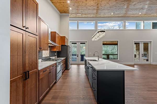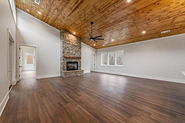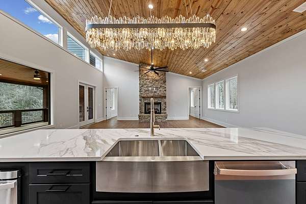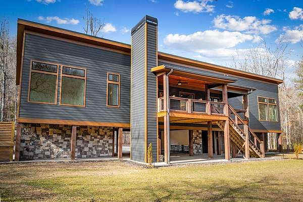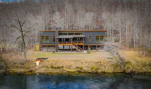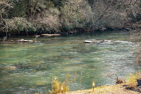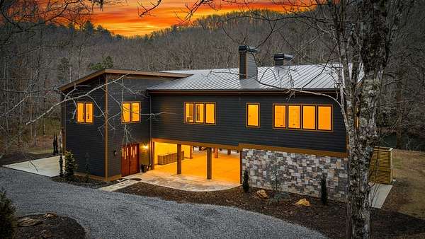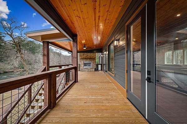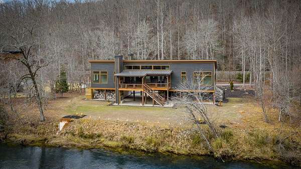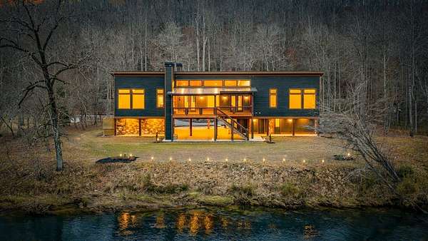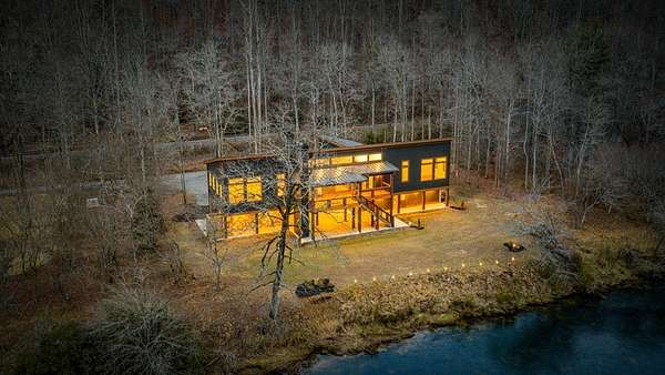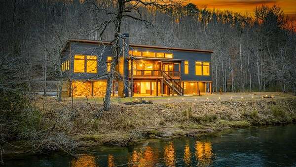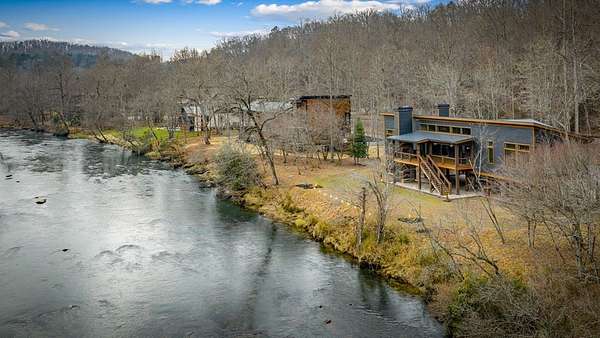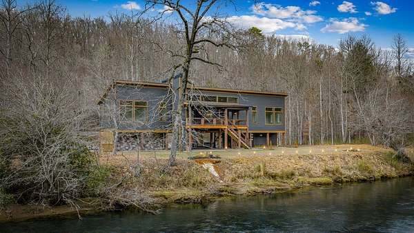 Immerse yourself in the natural beauty of waterfront living in the North Georgia Mountains Located less than 10 miles from downtown Blue Ridge, this stunning contemporary retreat was carefully designed & constructed right at the waters' edge of the Toccoa River on 2.03 acres in the beautiful Toccoa Riverbend Estates. You'll notice the attention to detail from the moment you arrive - beginning with the landscaping, moving to the beautiful balance of mixed materials that create a natural look blending the home with the great outdoors, & throughout the home with functional spaces & designer finishes. The terrace level offers 3 garage spaces (2 together + 1 separate), & an incredible covered space for gathering & entertaining that features a kitchen space with fireplace, storage space, & a half bath. Moving up the stairs to the main level, you'll immediately notice the crisp clean lines and upgraded finishes throughout that are the perfect backdrop to personalize your own haven & bring your memories to life. The kitchen, dining, & living room are all united with soaring ceilings & an abundance of glass that allows plenty of natural light and for you to soak in the beauty of the great outdoors from the comfort of your home. The stacked stone fireplace is the perfect touch creating a warm & relaxing environment & is the perfect focal point to design your living space around. The kitchen offers plenty of cabinetry & prep space, beautiful backsplash, statement lighting, stainless appliances, & the opportunity for the chef to mingle with others gathered! The covered deck just off the living room boasts its own fireplace, as well as access to the water & 2nd-level entertainment below. All 4 bedrooms & bathrooms are also located on the main level with tile showers, custom accents, & don't forget the view on the riverfront side of the home! Other highlights include wiring for a hot tub & generator & potential space for elevator. River life is calling what are you waiting for?