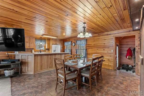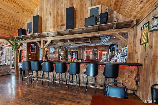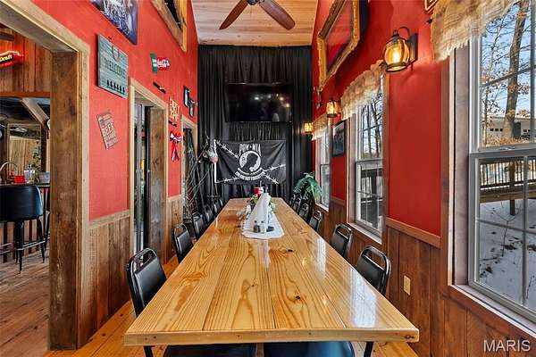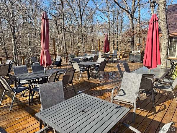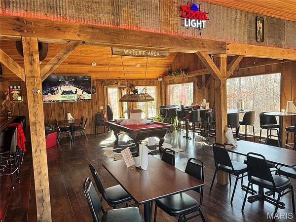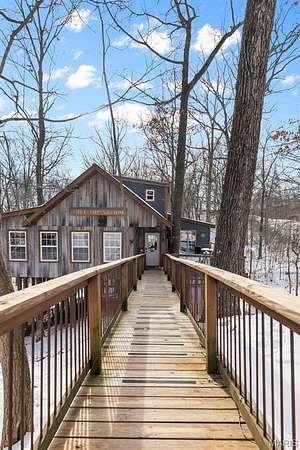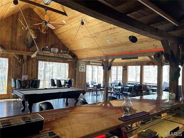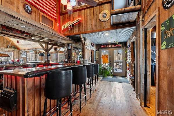 In addition to the residence, the property includes a remarkable second building styled as a Treehouse. This 2,500+ sq. ft. space features rustic wood ceilings, barn wood accent walls, large windows, and a stunning 30 x 40 private wood deck surrounded by trees, creating a peaceful and inviting setting. The building is fully equipped with a commercial-style kitchen, dish room, full bar, two bathrooms, ample storage, tables, chairs, and kitchen appliances included. With its layout and setting, it offers incredible potential for revenue generating opportunities for special events such as weddings, parties, restaurant, bar, or even a potential Airbnb.