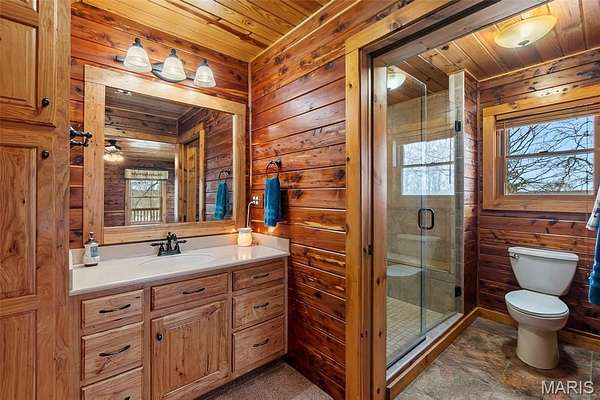 Welcome to this beautiful and truly unique property in a fantastic location, offering privacy, character, and endless opportunity. As you arrive, a private drive leads you to a stunning cedar-wrapped home highlighted by a large porch and expansive windows that bring the outdoors in. Inside, you'll immediately appreciate the craftsmanship with rustic wood beams, vaulted pinewood ceilings, and a striking stone wood-burning fireplace anchoring the open floor plan. The main-level provides an open floor plan with kitchen and dining room combo, primary bedroom that features a spacious tile shower, along with the convenience of main-level laundry. Upstairs offers two additional bedrooms and a full bathroom. The fully finished walk-out basement expands your living space with a large family room, fourth bedroom, two bonus rooms, and a full bathroom--perfect for guests, hobbies, or multi-generational living. Recent upgrades include a new roof, exterior wood siding freshly stained in 2025, and meticulous ongoing maintenance throughout the home. Next to the 2 car garage you'll notice a major bonus for comfort and efficiency is the wood-burning stove that efficiently heats the entire home, providing exceptional warmth during colder months.